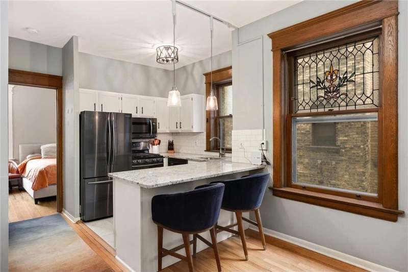 Charming & Meticulously Maintained Crocus Hill Condo! Centrally located! Wonderful walkability! Nestled in the highly sought-after Crocus Hill neighborhood, this beautifully updated 1-bed, 1-bath condo is move-in ready! Featuring a spacious living room with a cozy wood burning fireplace, soaring ceilings, original old world rich woodwork, and gleaming hardwood floors, this home exudes warmth and character. The modern updated kitchen boasts stainless steel appliances, while the convenience of in-unit laundry adds to the ease of everyday living. Off-street parking available for lease behind the building. On Grand Avenue, you'll enjoy unbeatable access to great shopping, dining, and all the charm this historic district has to offer!