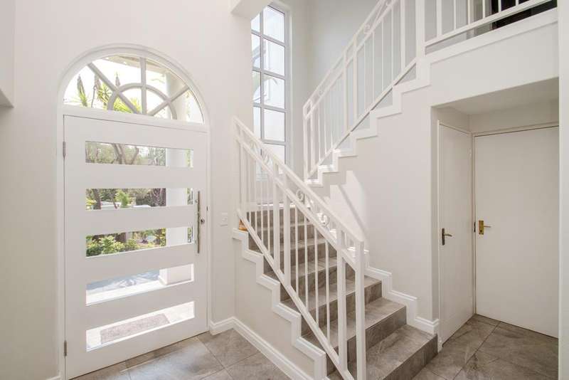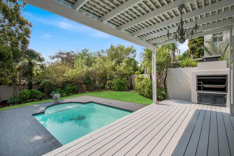 Modern INVESTMENT Home in Riverwood Village in Dainfern Golf Estate Welcome to this contemporary family residence perfectly positioned on a corner stand in the sought-after village of Riverwood, within the prestigious Dainfern Golf Estate. This home offers a seamless blend of modern design, spacious living, and exceptional extras for ultimate comfort and convenience. Key Features: Garaging & Parking: Double garage with undercover parking for four vehicles, plus additional undercover parking at the back for 4?Çô6 cars. Cottage: Self-sustained outside cottage with its own bedroom suite, bathroom, and kitchenette ?Çô ideal for extended family or guests. Grand Entrance: Double-volume foyer with staircase leading to the luxurious main suite. Living Spaces: - Two interleading family rooms with a central double-sided fireplace. - Elegant separate dining room. - Private study plus an additional study/mudroom/playroom off the kitchen. - Guest cloakroom. Entertainment & Outdoor Living: Covered patio deck with built-in braai, overlooking a sparkling pool and manicured garden. Kitchen: - Modern kitchen with center island, sleek cabinetry, and SMEG gas hob & oven. - Adjoining mudroom (convertible into study/playroom). - Full staff accommodation with en-suite bathroom. Bedrooms & Bathrooms: Main Suite: Spacious, wooden floors, sliding doors with magnificent views, walk-in closets, and a state-of-the-art bathroom. Private Guest Suite Upstairs: Sunny and spacious with its own en-suite bathroom. Downstairs Wing: TV/family lounge with fireplace, two bedrooms, and a full bathroom ?Çô with sliding doors creating a private wing. Sustainability & Extras: - 20 solar panels with an 18kW inverter and 10kW battery. - Borehole with two JoJo tanks, integrated into irrigation and household plumbing, with filtration for drinkable water. This is a light-filled, airy home that combines modern finishes with thoughtful design, ideal for families who value both style and practicality. The owners currently have a corporate tenant but it is ideal as an investment home