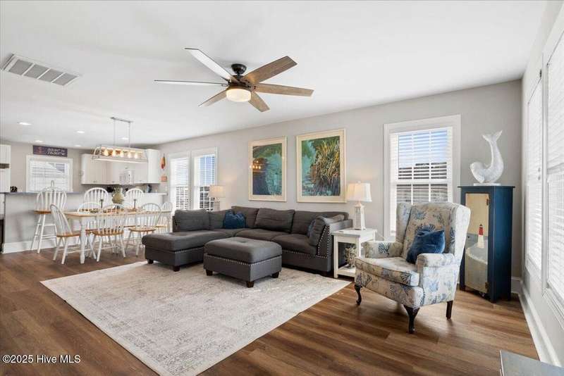Welcome to your new beach home! This impeccably maintained fully furnished second-row beach home offers 4 bedrooms and 3.5 baths, featuring a bright and light open floor plan and a coveted corner lot location directly across from the pier! Easy access to the beach is just steps away! Enjoy stunning ocean views in the front and canal views in the back, with a completed survey indicating potential for a pool addition. Recent upgrades include a new roof in 2024, exterior and trim painting in 2021, new underneath landing shutters and poly in 2022, and enhancements such as a new outdoor shower, sink, bench, and rear gates. Additional features include a workbench and TV in the storage area, new AC units in 2021 and 2024, installed smart thermostats, a Rheem central house dehumidifier, a new water heater in 2021, new flooring in 2020, and interior painting completed in 2021. This beach home has so much beachside charm, making it a must-see for buyers seeking a move-in-ready coastal retreat. Come see for yourself! Don't wait, this one won't last long!
