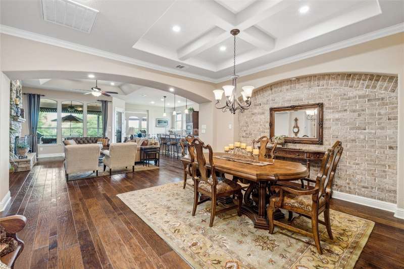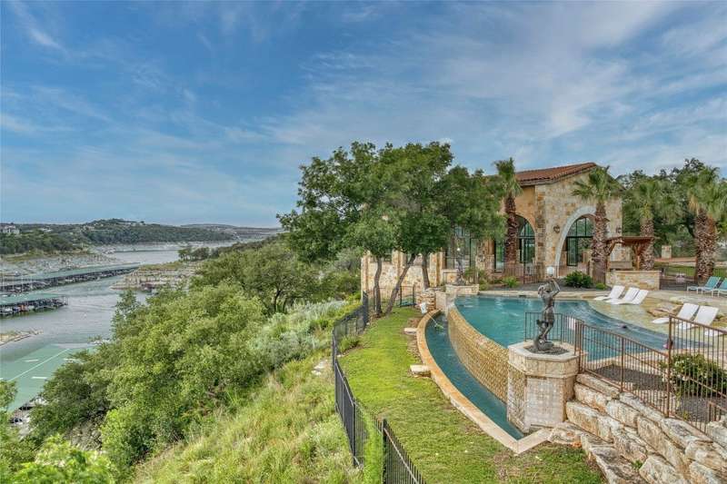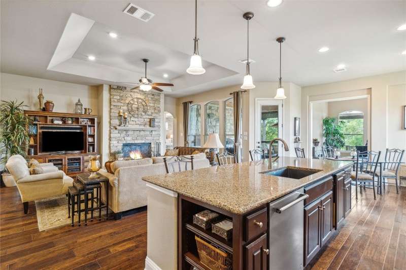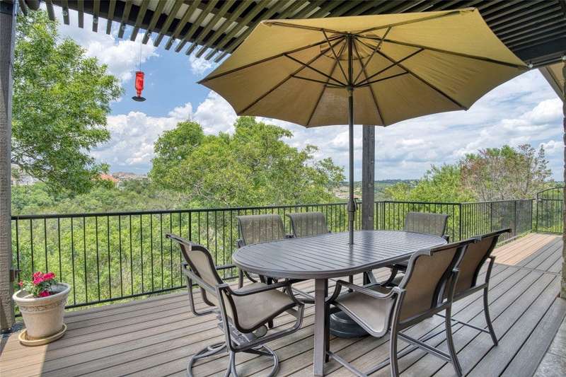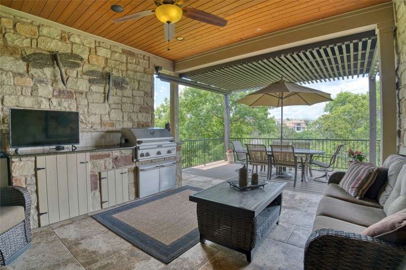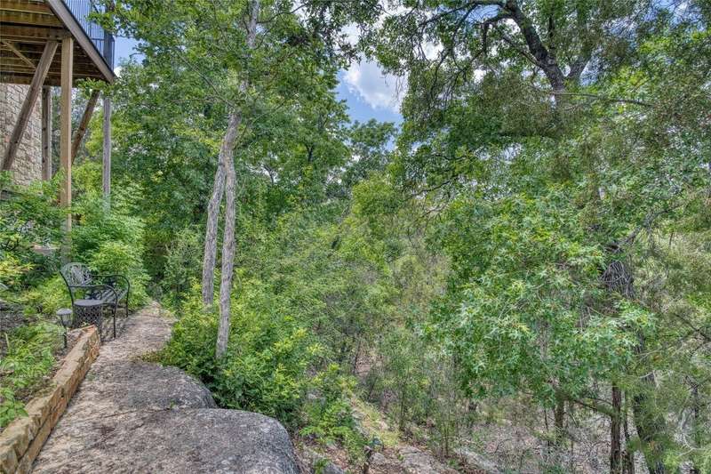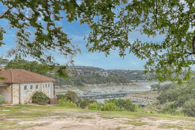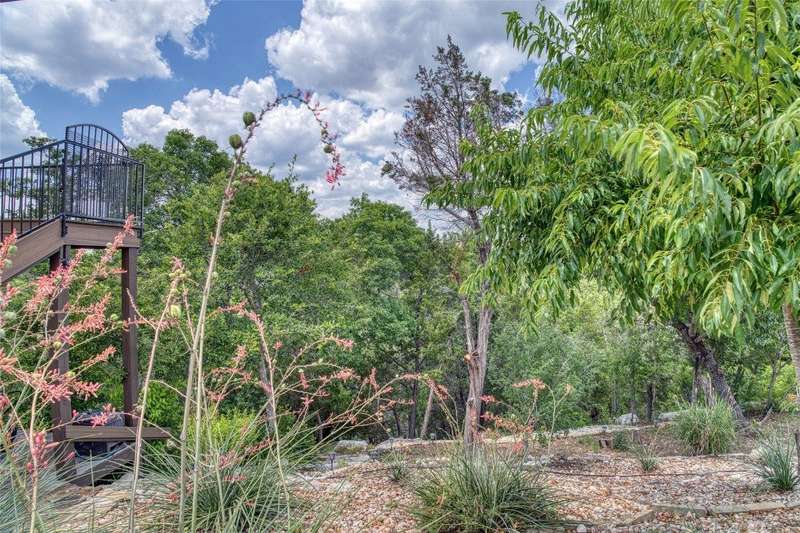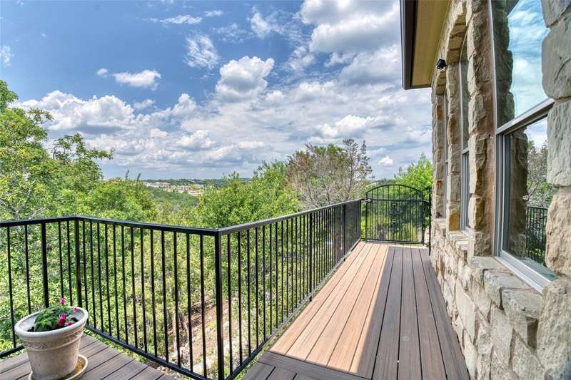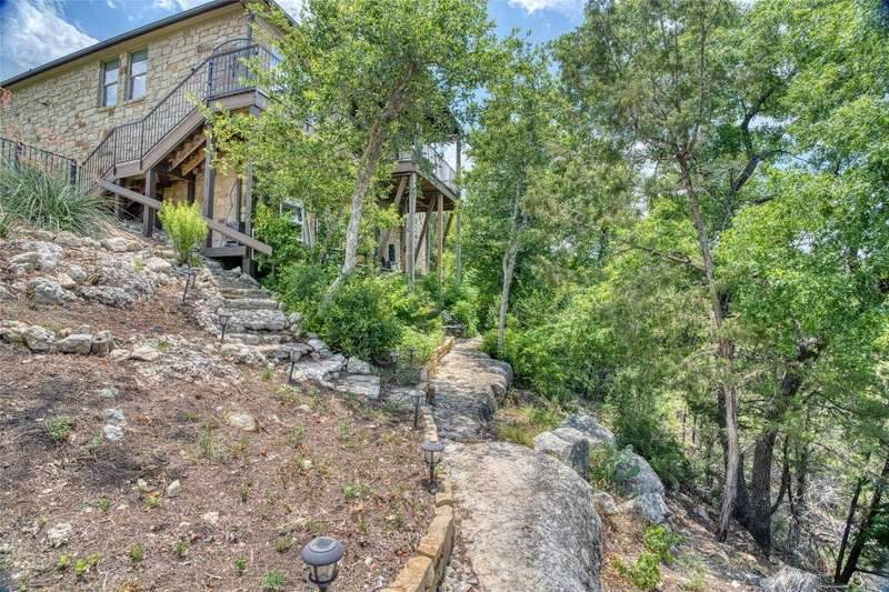 Welcome to 304 Tavish Trail. Upon entering this home, feel the experience of living in the canyon with the trees enveloping you. Designed with entertaining in mind, you will find a well-conceived floorplan. The living, dining areas and an additional flex room (music, office, family space) all have these great views. There are two primary bedrooms, the main one overlooks the canyon side with incredible views, and a generous bath and closet that all will envy. The second suite bedroom is in the front wing of the home and has a third guest room nearby. The kitchen details include 5 burner cooktop, double ovens, microwave, stainless dishwasher, substantial cabinet and counter space and large center island. Several brick accent walls have been placed in the formal dining, primary bedroom and kitchen island creating abundant charm to these areas. The fireplace has a custom rock fireplace and mantle showing quality detail. Upstairs there is a large secondary living space and full bathroom which will be advantageous for families and guests. Dining outside is so pleasant as you relax and enjoy the views and wildlife. There is a built-in kitchen with grill and extended Trex decking and stairway which leads to the fenced yard. As you enter the garage, ample space includes a 3-car tandem and a large workshop space. To complete this living experience, Rough Hollow offers its residents an abundance of amenities along with an outstanding Yacht Club and restaurant, gym, four swimming pools, sports courts of all types and access to the many trails throughout the canyons. Come enjoy the Rough Life! (Rough Hollow has a separate mandatory yacht club fee of $90.00 per month. This is separate from the semi-annual HOA fee.)