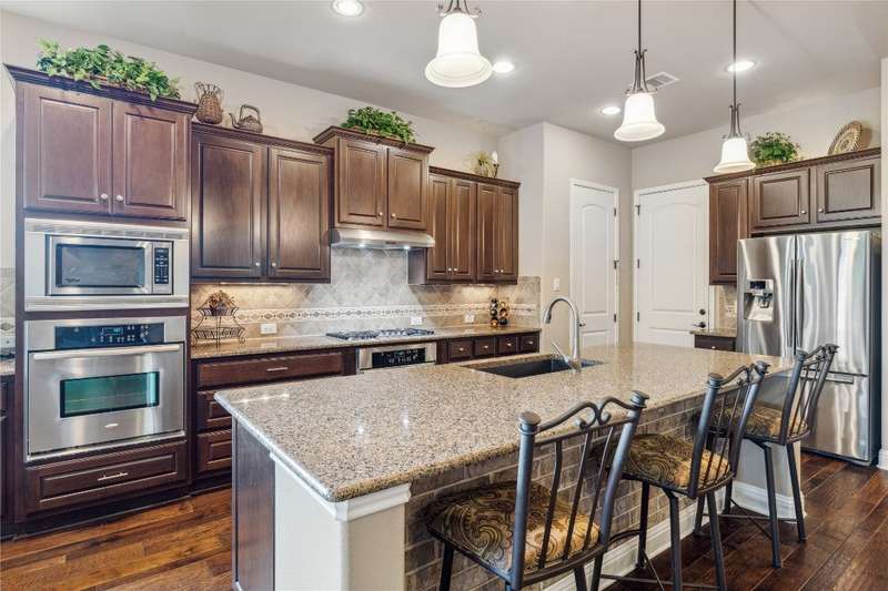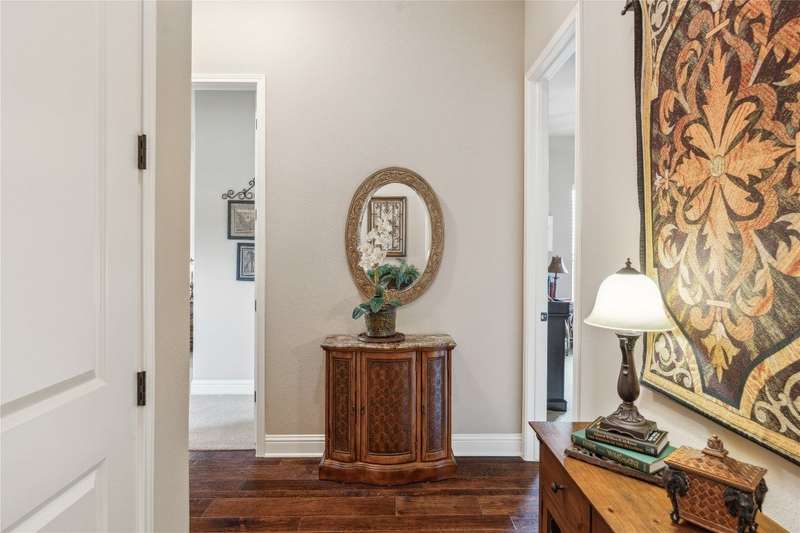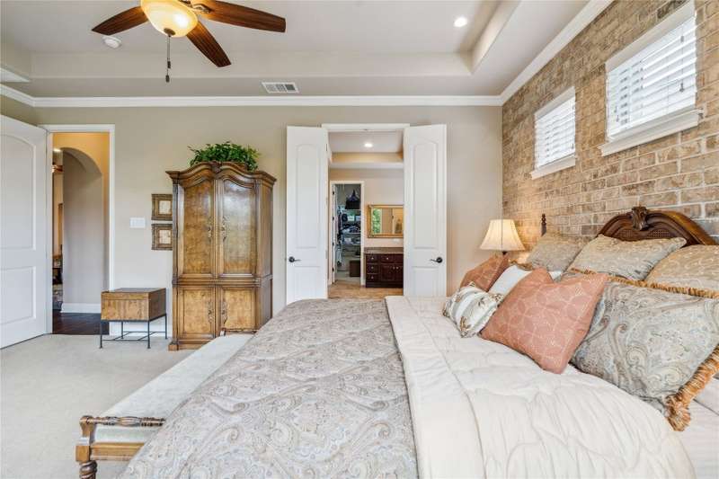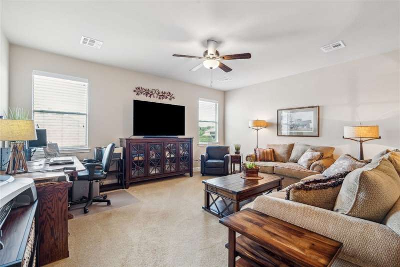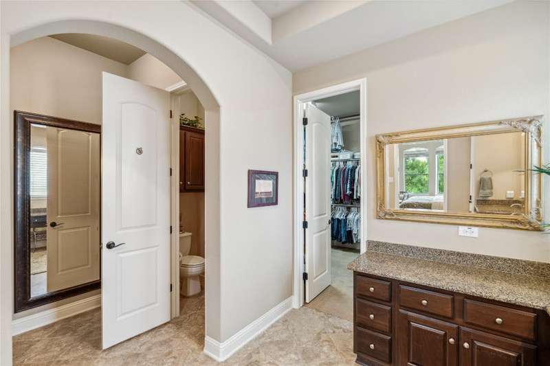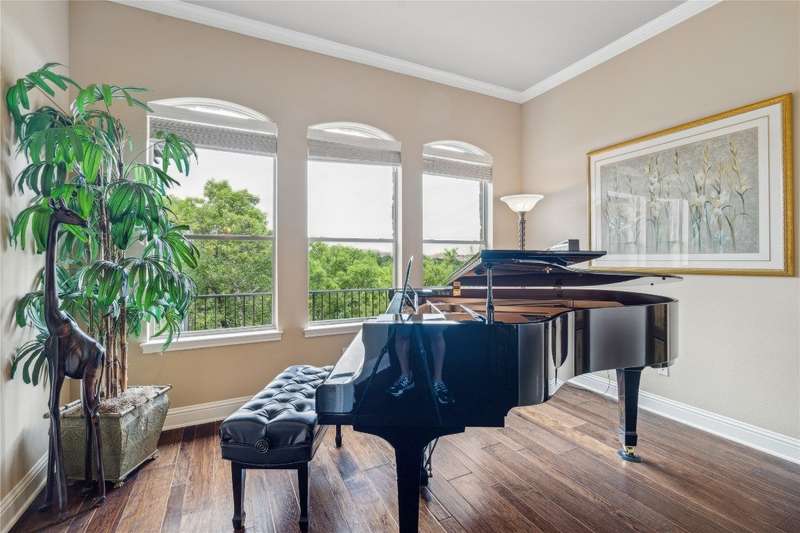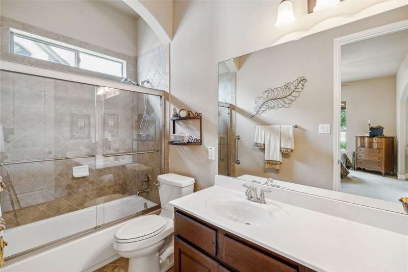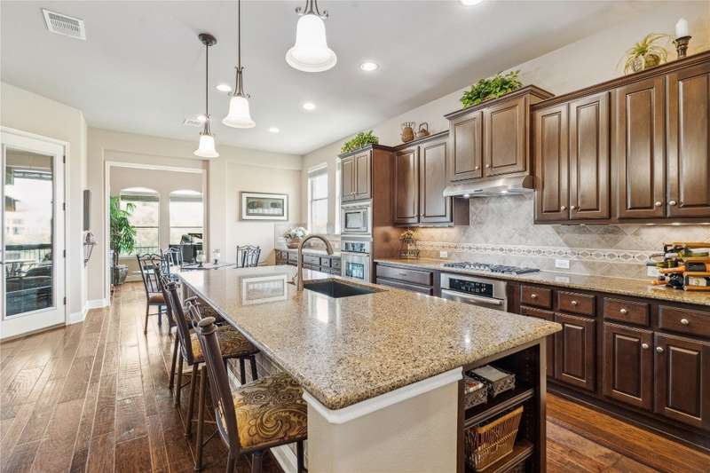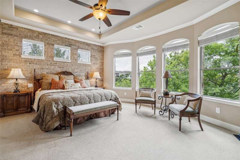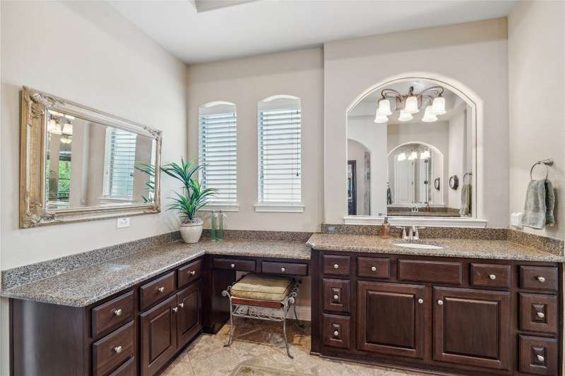 Welcome to 304 Tavish Trail. Upon entering this home, feel the experience of living in the canyon with the trees enveloping you. Designed with entertaining in mind, you will find a well-conceived floorplan. The living, dining areas and an additional flex room (music, office, family space) all have these great views. There are two primary bedrooms, the main one overlooks the canyon side with incredible views, and a generous bath and closet that all will envy. The second suite bedroom is in the front wing of the home and has a third guest room nearby. The kitchen details include 5 burner cooktop, double ovens, microwave, stainless dishwasher, substantial cabinet and counter space and large center island. Several brick accent walls have been placed in the formal dining, primary bedroom and kitchen island creating abundant charm to these areas. The fireplace has a custom rock fireplace and mantle showing quality detail. Upstairs there is a large secondary living space and full bathroom which will be advantageous for families and guests. Dining outside is so pleasant as you relax and enjoy the views and wildlife. There is a built-in kitchen with grill and extended Trex decking and stairway which leads to the fenced yard. As you enter the garage, ample space includes a 3-car tandem and a large workshop space. To complete this living experience, Rough Hollow offers its residents an abundance of amenities along with an outstanding Yacht Club and restaurant, gym, four swimming pools, sports courts of all types and access to the many trails throughout the canyons. Come enjoy the Rough Life! (Rough Hollow has a separate mandatory yacht club fee of $90.00 per month. This is separate from the semi-annual HOA fee.)