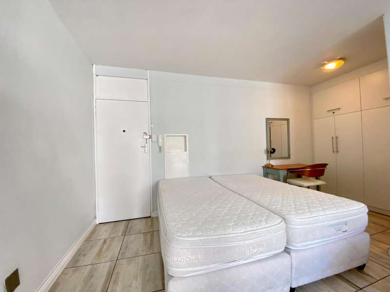 Studio for rent. This family friendly, secure building is situated opposite the renowned Company Gardens and conveniently within walking distance of the local trendy cafe's and restaurants. A beautifully maintained garden is nestled at the back of the building and offers a tranquil setting along with a large pool and kiddies play area. This extremely neat apartment is open plan and boasts a well fitted modern kitchen with granite tops and ample wardrobe space in the bedroom area. The lounge /diner leads onto a quaint balcony offering a glimpse of the mountain. Perfect setting for those long summer nights. All windows have modern white blinds. There are existing DSTV and Wifi connections. A perfect lock up and go space available furnished. NB! Additional information: Stove and microwave - no oven No pets allowed furnished Electricity not included Secure parking not included. Deposit of R25 000 plus R10 000 (1 month rent) upon signed lease agreement non negotiable. Please enquire via whatsapp only to arrange a viewing! Standard Credit checks apply.