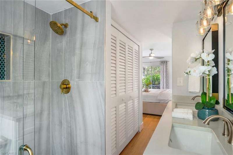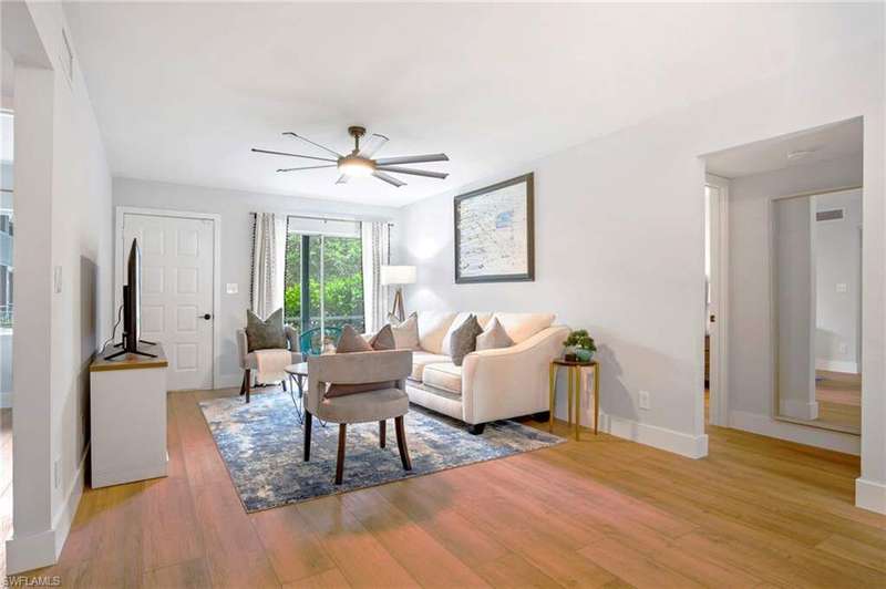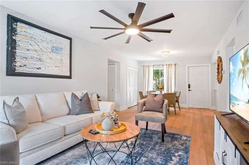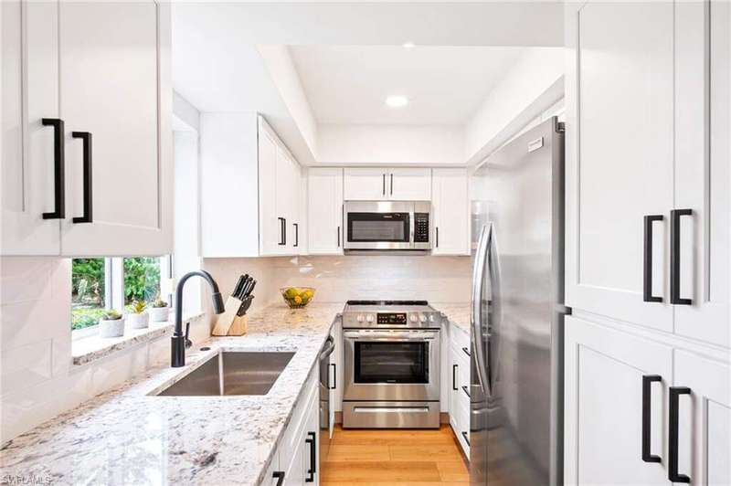 LOCATION allert! Just 1.2 miles from 5th Avenue and 1.1 miles from Naples' iconic sugar-sand beaches, this fully renovated condo in the sought-after Intown Club perfectly combines luxury, comfort, and location. Nestled in a quaint and intimate community, residents enjoy an oversized pool, a charming grilling area, and a beach-themed pavilion with ambient lighting-ideal for entertaining or relaxing after a day in the sun. Inside, you'll find a completely transformed living space, thoughtfully designed with attention to every detail. The brand-new white kitchen is a chef's dream, and the two spa-inspired bathrooms feature a walk-in shower and a luxurious soaking tub. Stylish, high-end furnishings and elegant decor create a warm, magazine-worthy ambiance throughout. The spacious living area flows seamlessly onto a large screened lanai-perfect for morning coffee or a peaceful afternoon retreat. Whether you're lounging by the pool or exploring the vibrant heart of Naples just minutes away, this exceptional condo captures the very best of coastal living.