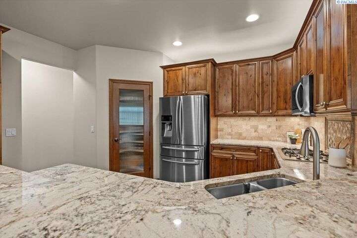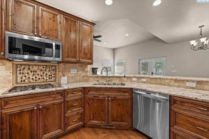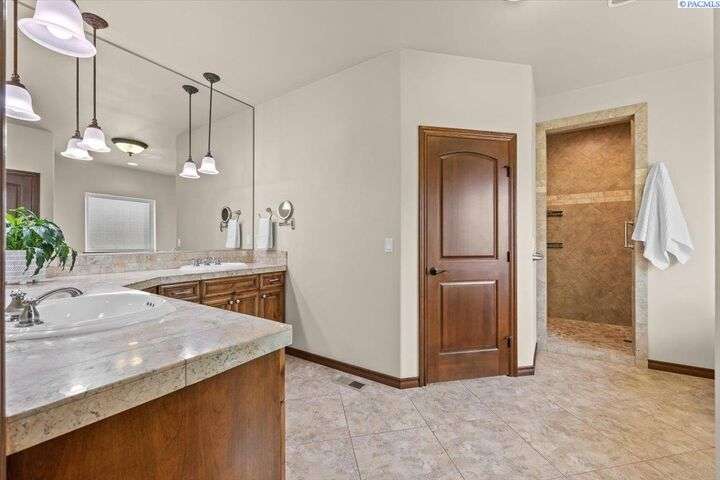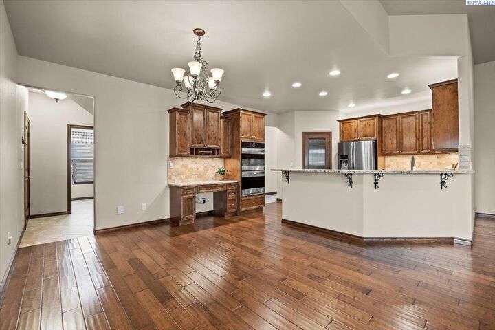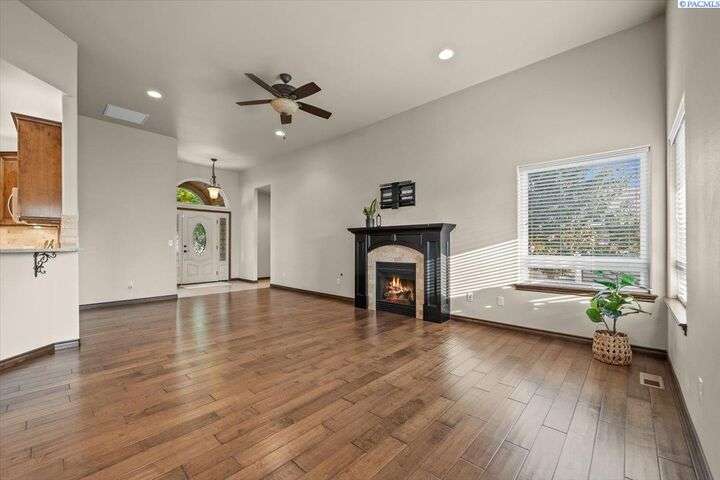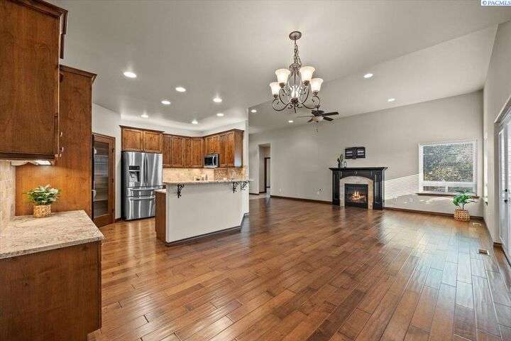 MLS# 287203 Step into refined comfort with this stunning one level home with spacious bonus room, where pride in craftsmanship is evident in every detail. Featuring a versatile and spacious bonus room, 3 bedrooms, a private den/office, and 3 bathrooms, this home offers both luxury and functionality. An open-concept living area highlights a cozy fireplace, hand-scraped hardwood floors, and luxury finishes throughout. The chef’s kitchen is designed to impress with stainless steel appliances, a walk-in pantry, motion sensor faucet, under and over cabinet lighting and striking granite countertops. The spacious primary suite provides a serene retreat with dual sinks, marble countertop, walk-in tile shower, walk-in closet, and a classic clawfoot tub. One side of the home features jack and jill style bedrooms with shared bathroom and walk-in closets. A newer Trane HVAC unit and Kinetico water softener ensure year-round comfort and efficiency, while an additional mini-split heating/cooling unit for the bonus room provides year-round temperature control. Perfectly blending style and thoughtful design, this home sits on a fully fenced lot with a large storage shed and two covered porches for year-round enjoyment. The side-entry three-car garage adds convenience and curb appeal, while the superior craftsmanship of this Don Pratt built home provides peace of mind. With timeless details, modern upgrades, and plenty of room to grow, this property is a rare opportunity to enjoy luxury living in a truly exceptional home and neighborhood. This home qualifies for a VA Assumable Loan at 3.375%, ask your agent for details.