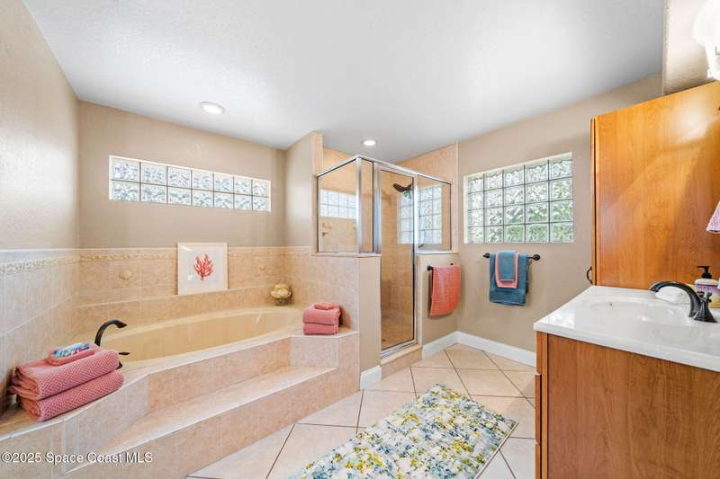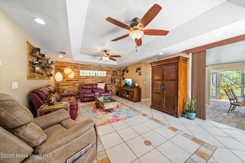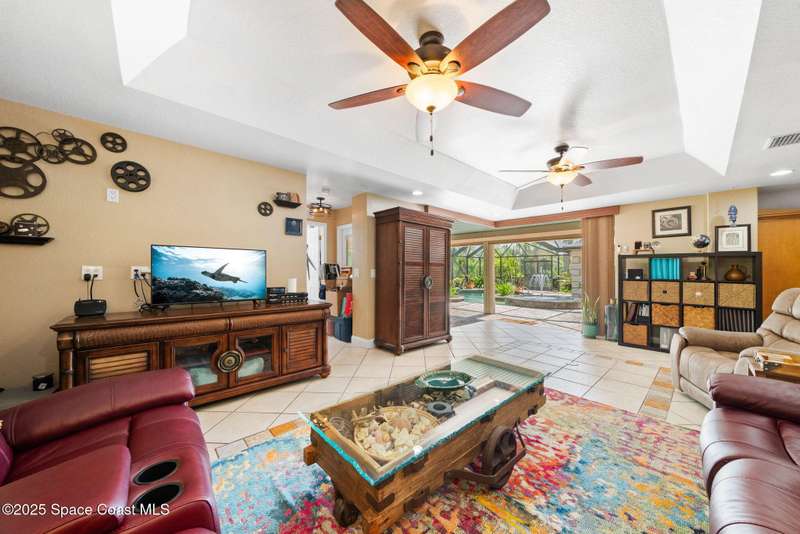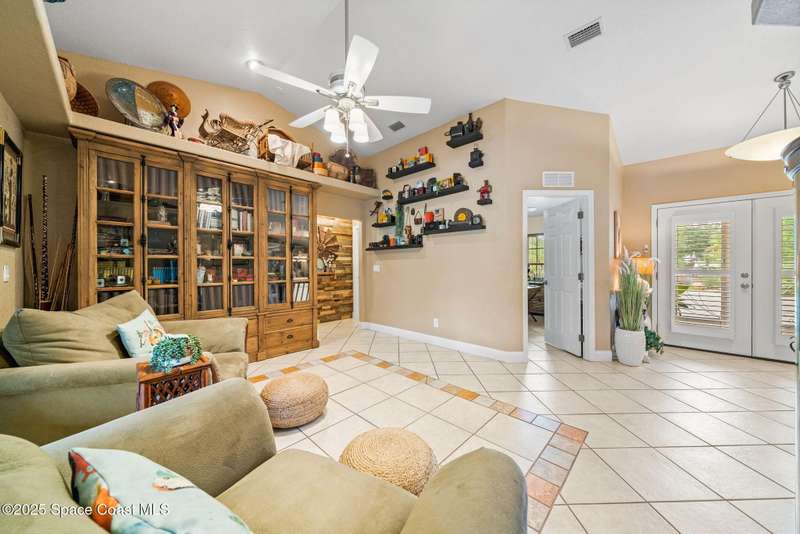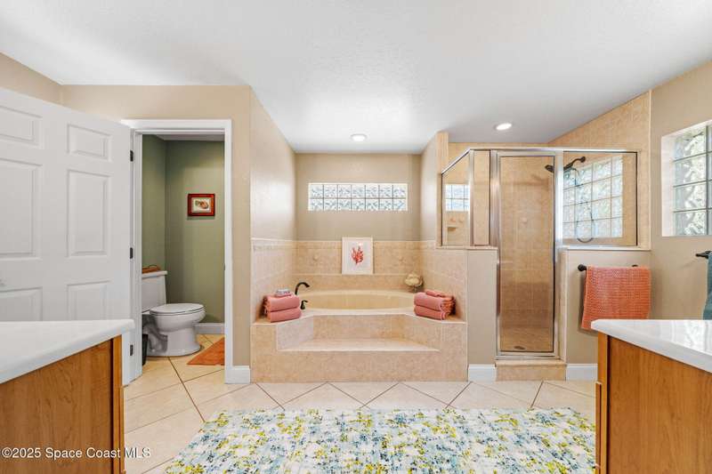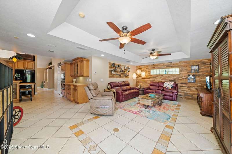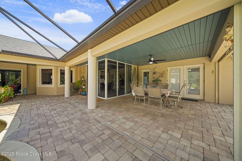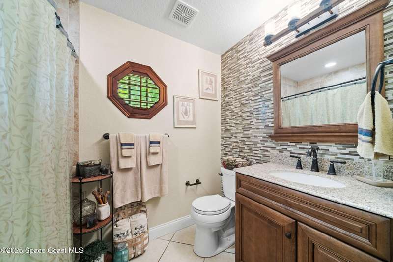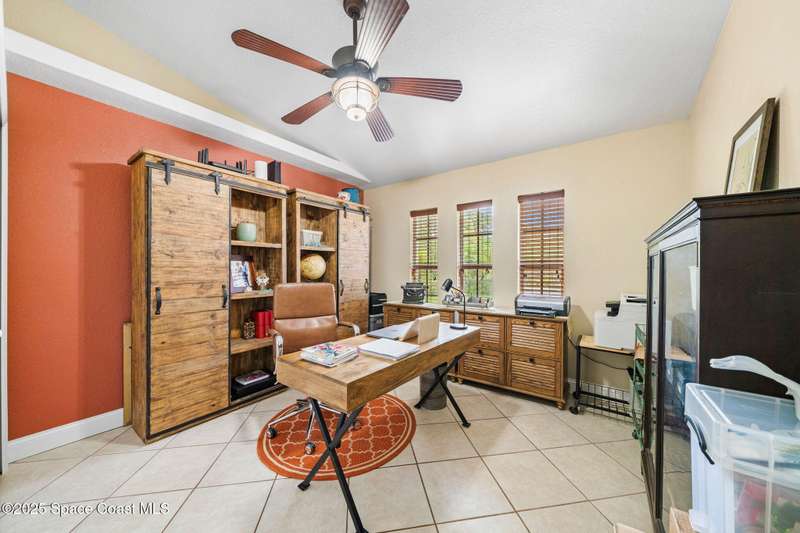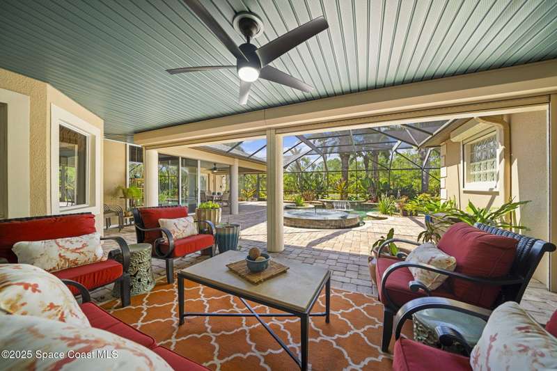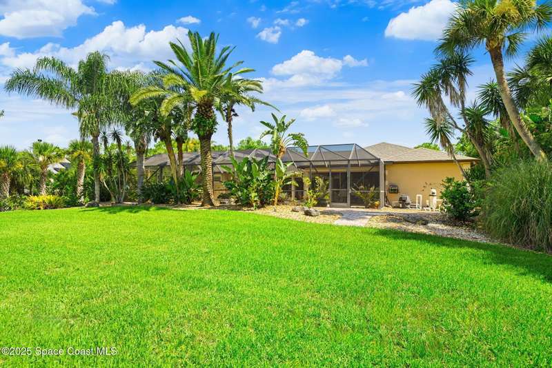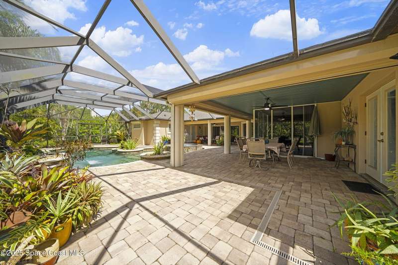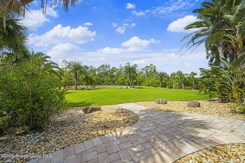 Welcome to this one-of-a-kind 4.17-acre private estate in the prestigious Timbers West community of Rockledge. This meticulously maintained property perfectly blends luxury, land, and location. From the moment you pull into the scenic drive, vibrant tropical landscaping and a grand first impression set the tone for charm and exclusivity. Inside, you'll find 5 bedrooms and 4 full baths, allowing 4 of the bedrooms their own bathrooms and the 5th room ideal for an office, play room or nursery. This 2005 custom-built home boasts a 3-car garage, a new roof, whole-house generator, electric hurricane shutters, and a walk-in closet built as a concrete safe room for ultimate peace of mind. The spacious kitchen with a large island overlooks the screened pool and spa through wide sliders, creating an ideal indoor-outdoor living flow. The screened pool and spa, complete with a gas heater, in-ground cleaning system, and both saltwater and chlorine options is designed for year-round enjoyment. The grounds are equally impressive, with two serene ponds, an artisan well, and lush manicured landscaping. There's ample space for gardening, RV/boat storage, and all your outdoor toys. The back half of the property remains in its natural state, offering unmatched privacy and featuring a 12x16 shed with electric. This rare property combines seclusion, convenience, and timeless charm, all just minutes from Viera, I-95, shopping, restaurants and the beaches.