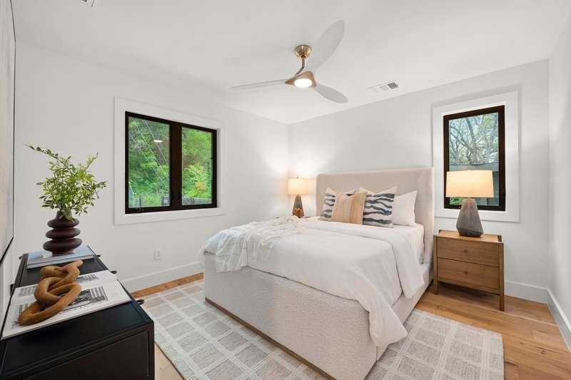 Tucked away in a serene enclave on the shores of Lake Austin, 1606 Ski Slope Drive is a beautifully remodeled contemporary residence offering the perfect balance of privacy, style, and waterfront living. With clean lines, a modern aesthetic, and walls of windows that frame stunning lakefront views, this home is designed to embrace its natural setting. The light-filled interiors include three flexible bedrooms that could serve as guest rooms or an at-home office, gym or bunkroom. Plus, the spacious open-concept living and kitchen area is ideal for both entertaining and quiet relaxation after a day on the lake. Outside, a private boat dock provides effortless access to the water, making it easy to spend days paddling, boating, or simply soaking in the lake lifestyle. The current owners have permitted plans for a new boat dock (see agent).