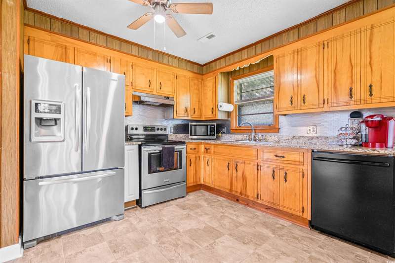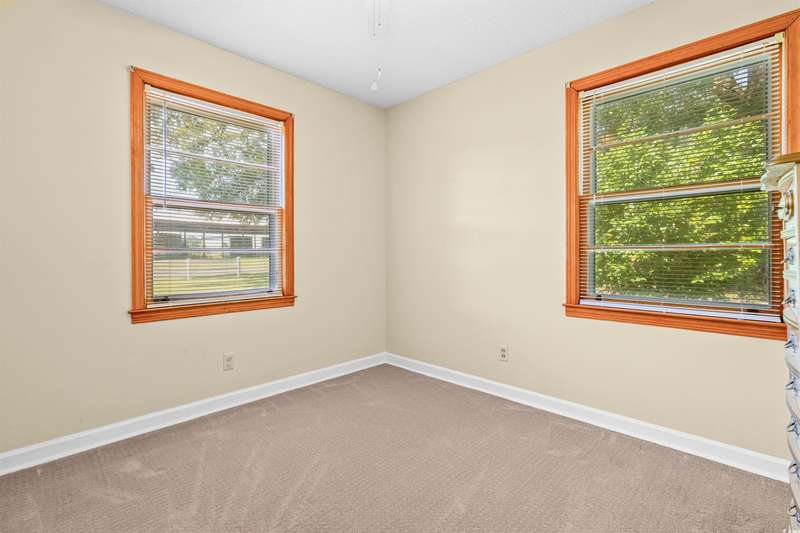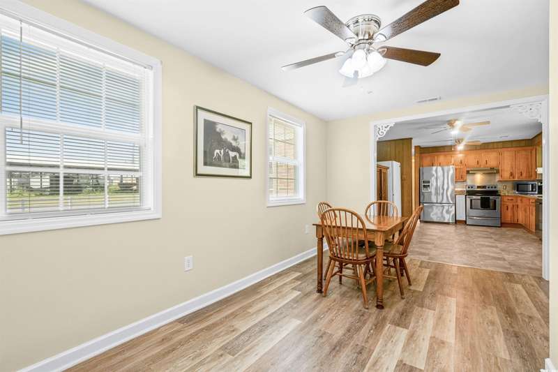 Located in the beautiful Pleasant Hill community, this home offers a wonderful blend of updates and charm. The property features a new roof installed in 2016, hardwood floors, and a 2021 HVAC system. In December 2016, a new room was added to include a spacious laundry room and an additional full bath, along with new doors and ceiling fans included in the new addition. The living room boasts hardwood floors and a ceiling fan, while the kitchen is well-appointed with vinyl flooring, granite countertops, a decorative backsplash, solid pine wood cabinets, a KitchenAid refrigerator, Frigidaire smooth-top stove, Bosch stainless-steel dishwasher, double stainless sinks, and two ceiling fans. The dining room features vinyl windows and LVP flooring, while the laundry area includes a washer, dryer, and shelving. The home offers two full baths- one with a walk-in shower and vanity with LVP flooring, the other with tile flooring, a tub/shower combo, granite-top vanity, and new vent and lighting. The master bedroom has carpet and a ceiling fan, the second and third bedrooms also have carpet with ceiling fans, and the fourth bedroom has been converted into a large walk-in closet. Additional highlights include attic storage, a Rinnai tankless water heater, and a propane wall heater for supplemental warmth. Outside, you'll find a large deck with a swing, handicap access via a ramp, RV hookup, three storage sheds, a two-car carport, and a very large garden spot. The exterior is finished with brick and vinyl siding, and the home is served by public water with a private septic system. Don't miss the chance to make this well-maintained home yours- it's the perfect place to enjoy both comfort and convenience in a peaceful setting.