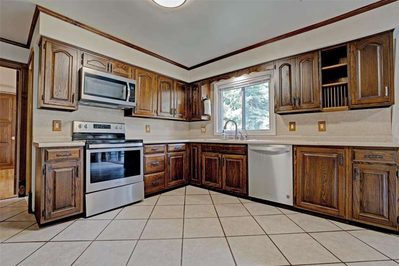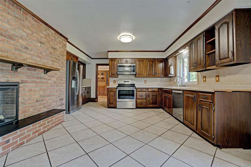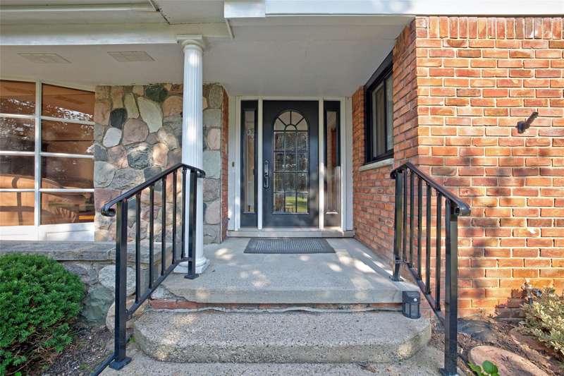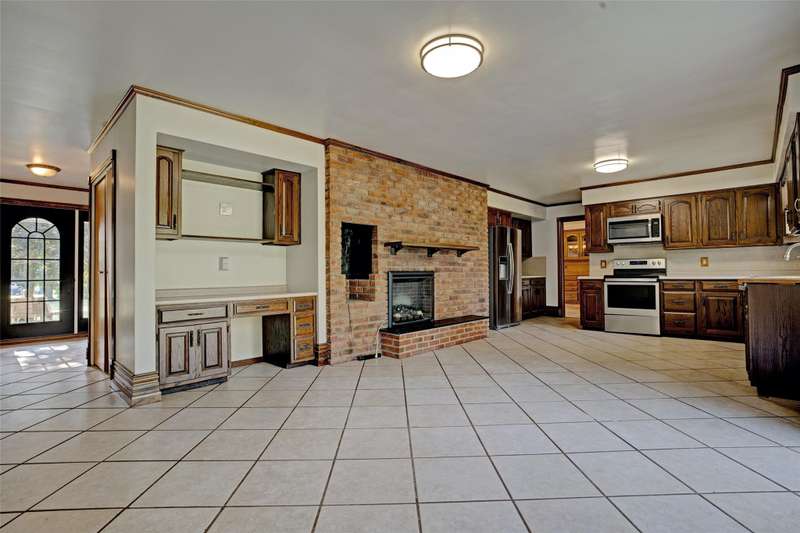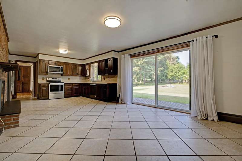 This charming brick ranch offers generous living space with a warm, inviting layout. The large kitchen features a cozy fireplace, perfect for family gatherings, and has access through a doorwall to a beautiful backyard with a firepit—ideal for outdoor entertaining. The spacious dining and living rooms are filled with natural light, creating a welcoming atmosphere. Dining room has doorwall leading to covered patio equipped with tv for entertaining. The home includes one half bath and two full bathrooms, all newly remodeled in 2025, with modern finishes. The fourth bedroom can easily serve as a home office or flex space. Additional highlights include new windows, a recently replaced roof and gutters, new front door and an attached two-car garage, a large yard with a deck for outdoor fun. A primary bedroom doorwall to the back deck—making indoor-outdoor living seamless. This home combines comfort, style, and functionality in a wonderful neighborhood setting. Looking at all reasonable offers!