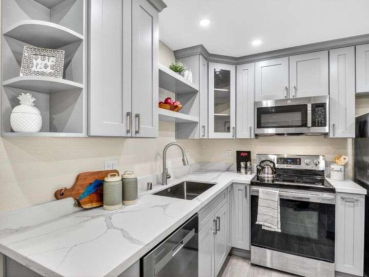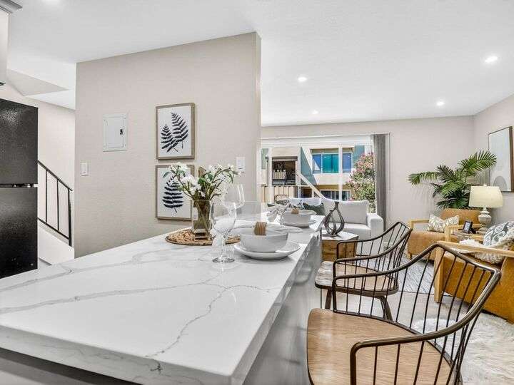 Step into this bright and beautifully maintained West San Jose condominium ideally located within the award-winning Cupertino Union and Fremont Union High School Districts, top-rated De Vargas Elementary, Hyde Middle, and Cupertino High, this 2-bedroom, 1.5 bath home offers 1,099 sqft of comfortable living in one of Silicon Valleys desirable neighborhoods. Inside, you will find an inviting open layout with recessed lighting, new laminate flooring, fresh paint. The kitchen features quartz countertops, new cabinetry, and functional appliances, seamlessly connecting to the dining and living areas for easy entertaining. The spacious primary suite includes a large closet area. Enjoy community amenities and a prime location just minutes from Santana Row, Valley Fair, and major tech employers like Apple, with convenient access to Highways 280 and 880. This is Silicon Valley living at its finest.