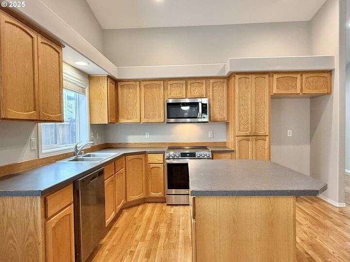 Enjoy main level living in this freshly updated home featuring fresh paint inside and out plus newly refinished wood floors. Get both a vaulted great room with fireplace and island kitchen plus a front room flex space for office or separate living area. Relax in the primary bedroom with walk-in closet and private bathroom. Discover this great neighborhood close to schools, golf and shopping. Call your broker to see it today.