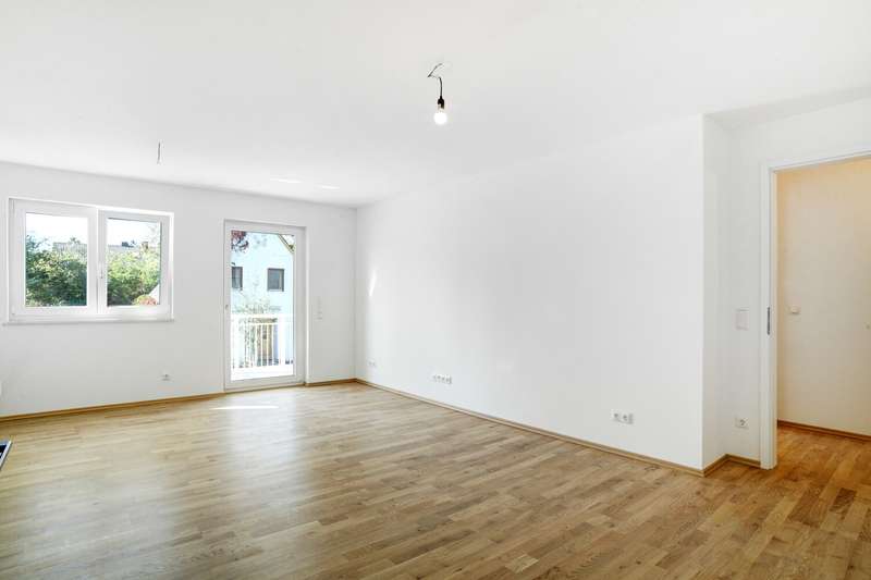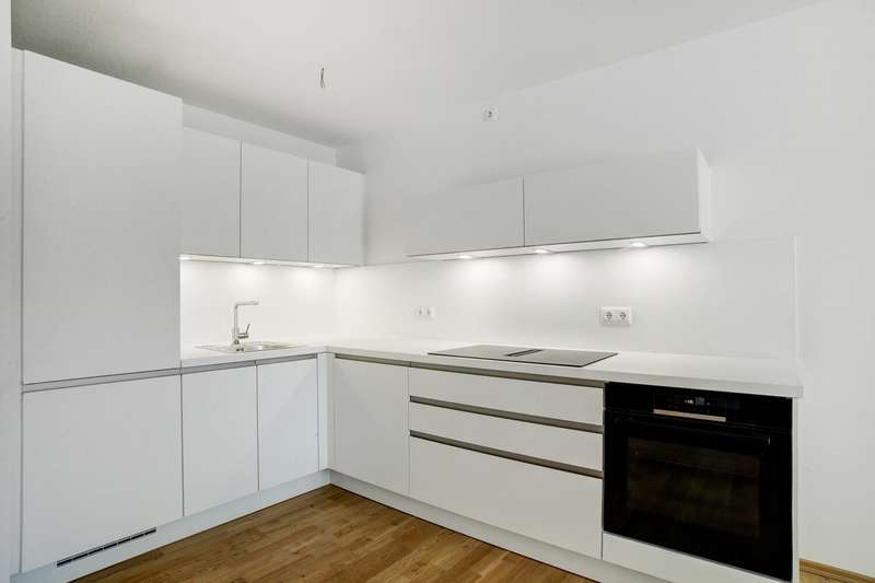 This modern 2-room apartment is located on the second floor of a new building from 2025 in Gröbenzell. The building is part of a small residential complex with only three floors and impresses with its high-quality construction, clear architecture and the convenience of an elevator. The apartment impresses with its bright, open floor plan and fixtures and fittings that leave nothing to be desired. The focal point is the spacious living and dining area with integrated modern kitchen with high-quality electrical appliances, which offers plenty of space for individual design. From here, you can access the approximately 10 m² balcony, which invites you to enjoy breakfast outside on warm days or relax after work. The bedroom creates a quiet retreat, while the tastefully furnished bathroom with modern shower provides daily comfort. Floor-to-ceiling windows flood the rooms with light and underline the modern feel of the home. Additional convenience is provided by a private cellar compartment and an underground parking space with its own power connection (wallbox preparation). The location combines the best of both worlds: quiet living in green surroundings and at the same time short distances to shopping facilities, restaurants, kindergartens, schools and local public transport. Whether for singles or couples - this apartment is a perfect place to arrive, feel good and live.