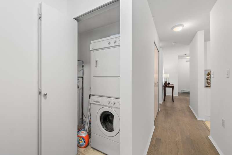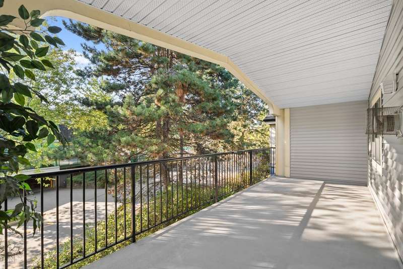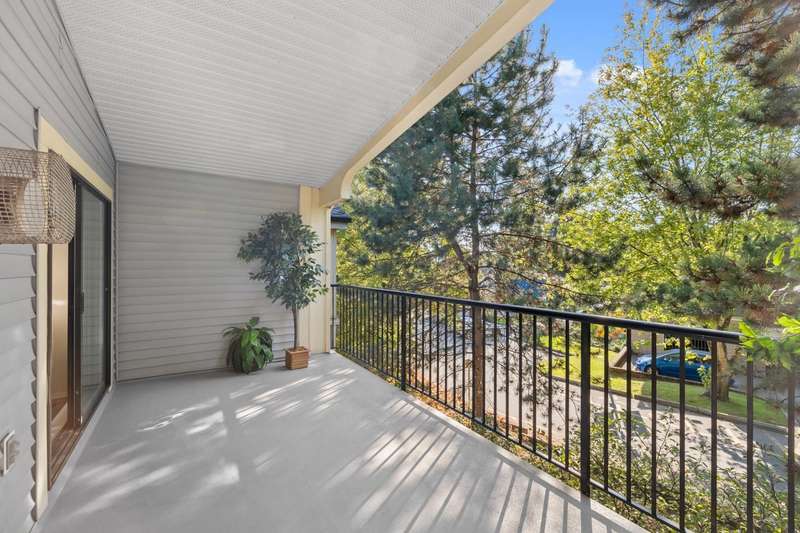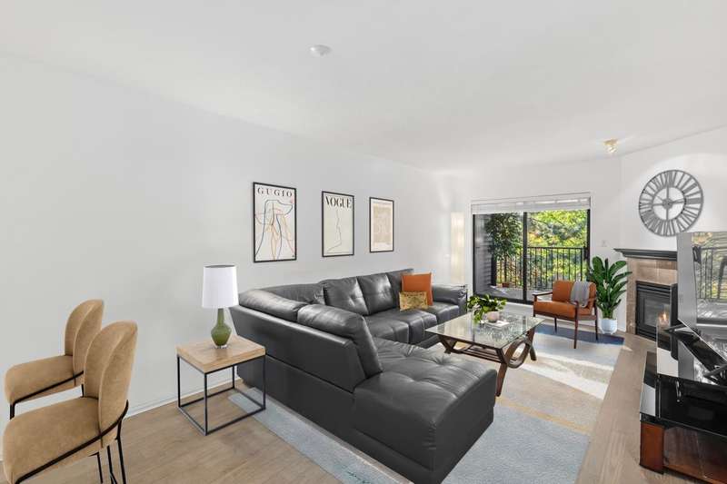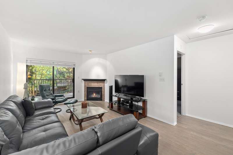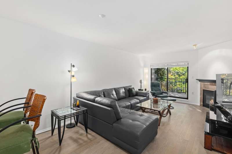 Downsizing Dream Spot in a 55+ Building that Offers So Much… This beautiful top-floor 2 bedroom, 2 bathroom home offers 1,014 sq. ft. of thoughtfully designed living space in a well-maintained building. Recent updates include hardwood flooring and fresh paint throughout, creating a bright, modern feel with an inviting touch. Large windows fill the home with natural light, while the spacious layout balances comfort and functionality. Features include a cozy gas fireplace, in-suite laundry, secure underground parking, and a storage locker. The large covered deck is a real bonus — a perfect year-round retreat for relaxing or entertaining. A must-see property, ideal for buyers looking to downsize without compromise.