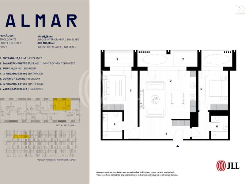 Apartamento T2 novo, com 98 m2 de área bruta privativa, varanda, estacionamento e arrecadação, no ALMAR Beach, em Almada. Os apartamentos dispõem de varandas ou terraços privativos, cozinhas equipadas e estacionamento, tudo desenvolvido para a sustentabilidade e funcionalidade. O ALMAR Beach é mais do que um simples projeto residencial, é uma abordagem à escala da cidade que une a alma de Almada, a calma de um refúgio verde e a proximidade do mar, disponibilizando aos seus residentes o verdadeiro significado de 'o melhor dos dois mundos'. Situado em Almada, o projeto beneficia de uma localização excecional, a poucos minutos das praias da Costa da Caparica assim como ao Parque da Paz, o refúgio verde que proporciona um espaço ideal para desacelerar, reencontrar o equilíbrio e desfrutar de ar puro. Fácil acesso a Lisboa através da Ponte 25 de Abril e às principais vias rodoviárias como a A2, A38 e A33. Rodeado de uma variedade de serviços e infraestruturas que atendem às necessidades do dia a dia, incluindo o Almada Forum, supermercados, escolas e restaurantes. Categoria Energética: A #ref:88645