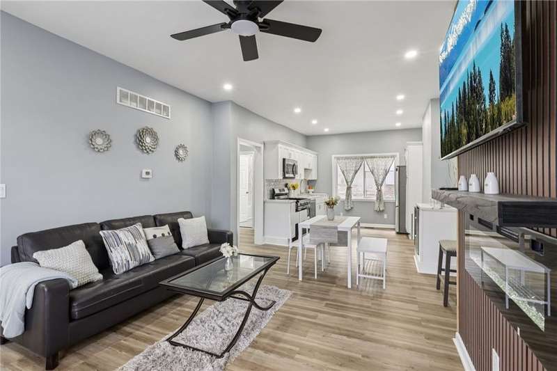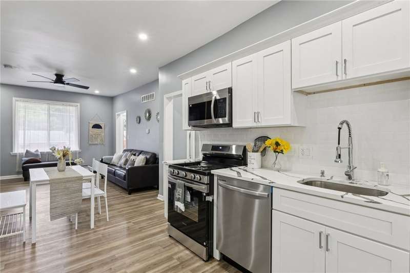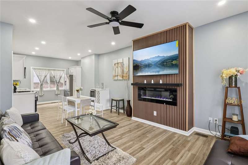 This beautifully renovated 3-bedroom, 2.5-bath home blends modern finishes with everyday convenience. The bright, open kitchen features sleek **quartz countertops**, a **wine refrigerator**, and **brand-new stainless-steel appliances**?perfect for cooking and entertaining.Enjoy the comfort of **central air**, **first-floor laundry**, and two stylish **electric fireplaces** for year-round ambiance. The home offers both a **one-car garage** with automatic door opener and **off-street parking for up to four vehicles**. The fenced backyard is ideal for relaxing or hosting gatherings, while the quiet neighborhood provides peace and privacy. You'll love the unbeatable location?just **7 minutes to Bakery Square**, close to shopping, dining, and within walking distance to **Chadwick Playground**, convenience stores, and bus stops. Don't miss out on your chance to live in this modernized, centrally located home! Eligible for PNC's grant. HSA home warranty included!
