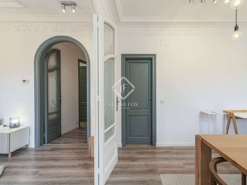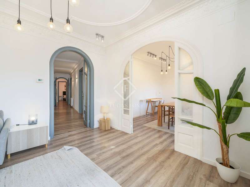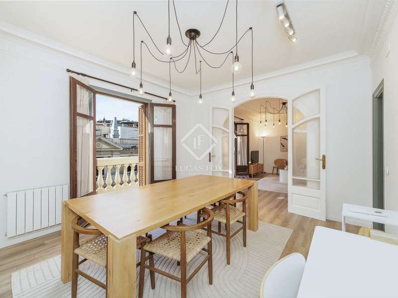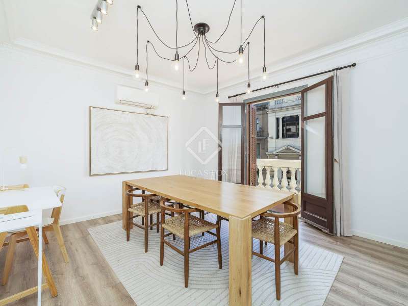 This magnificent property is located in a period building in the Born neighbourhood , one of the most central and distinctive neighborhoods in Barcelona. The apartment boasts a high-quality renovation that combines its original features, carefully restored and preserved, with a modern interior design. The result is a stunning apartment with spacious, light-filled rooms and high ceilings, offering a contemporary and sophisticated style while preserving the building's regal character. The day area comprises a large living dining room living room , a welcoming and elegant room with access to two lovely balconies offering pleasant views of the neighbourhood and its period buildings. Next, we find the practical kitchen, with porcelain tile floors and fully equipped with a dishwasher, washing machine, and oven and microwave with stainless steel and vitreous enamel finishes. The night area, on the other hand, features four wonderful bedrooms, one of which can be used as an study or study. Two bathrooms with single-lever taps in the sinks and thermostatic shower taps, both low-flow to maximize water conservation, complete the apartment. The property features new electrical, gas, and water installations. The windows are double-glazed to ensure comfort year-round. Get in touch with us to visit this wonderful property in the heart of the Born neighbourhood .