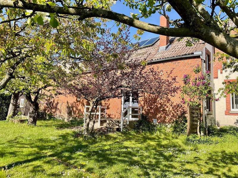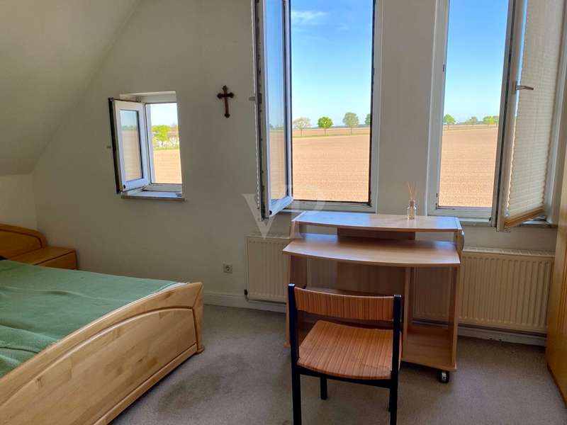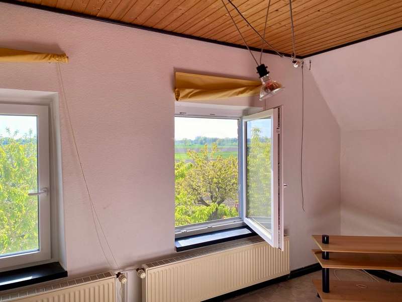 For sale is a charming remaining farmhouse on a generous plot of almost 1 hectare. The living space of the house is approx. 250 m² and comprises a total of seven rooms, which offer a wide range of possible uses. Built in 1905, the house is in a condition that requires some renovation work, but at the same time offers the potential for new design possibilities. The floor plan of the house is functional and spacious and suitable for a large family, two families or living and working under one roof. There are several rooms on the first floor that offer plenty of space to realize individual living ideas. The kitchen is spacious and allows for the installation of a modern eat-in kitchen. There is also the option of creating a granny apartment on the first floor via a side entrance, while on the upper floor, whose windows were modernized in 2024, there are further rooms that are ideal for use as bedrooms or offices. A new bathroom with bathtub was also installed here. A renovation of the house ensures better energy efficiency and also brings a contemporary character to the house in terms of style. The windows on the first floor were already replaced in 1982, and here, too, one would have to think about a renewal. The current heating is provided by an oil-fired central heating system from 1991, which should be replaced in due course. The hot water is provided by a solar thermal system. The simple furnishing quality of the house offers future owners the opportunity to design the rooms according to their own ideas and thus further increase the living comfort.the extensive plot offers numerous options for use, whether as a spacious garden, grazing area for animals or as a play area - the design possibilities are almost unlimited and allow individual wishes and ideas to be fulfilled. Additional potential is offered by the existing outbuildings, which can be used in a variety of ways, whether for keeping animals, as a workshop or for other personal projects. The entire ensemble of this property gives future owners plenty of scope to renovate, modernize and adapt to modern living requirements. This offer is aimed at buyers who appreciate the potential of an older house and are willing to develop it further according to their own ideas. A viewing offers the opportunity to gain a detailed impression of the property and its extensive grounds. Interested parties are cordially invited to experience the potential and diversity of this property. The arable land belonging to the farm still contains two possible building plots. However, this area is currently leased, so only the yard area with meadow totaling 2571 m² is currently available. The former stable area has new doors and gates. It would be possible to build 2-3 horse boxes in this part. A wooden shed is also available as a garage or further storage space.