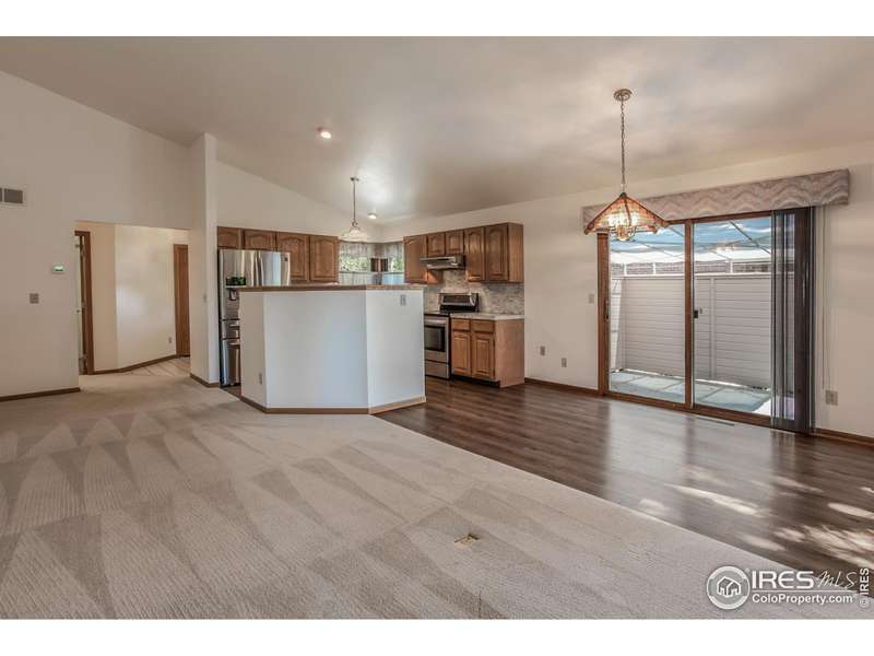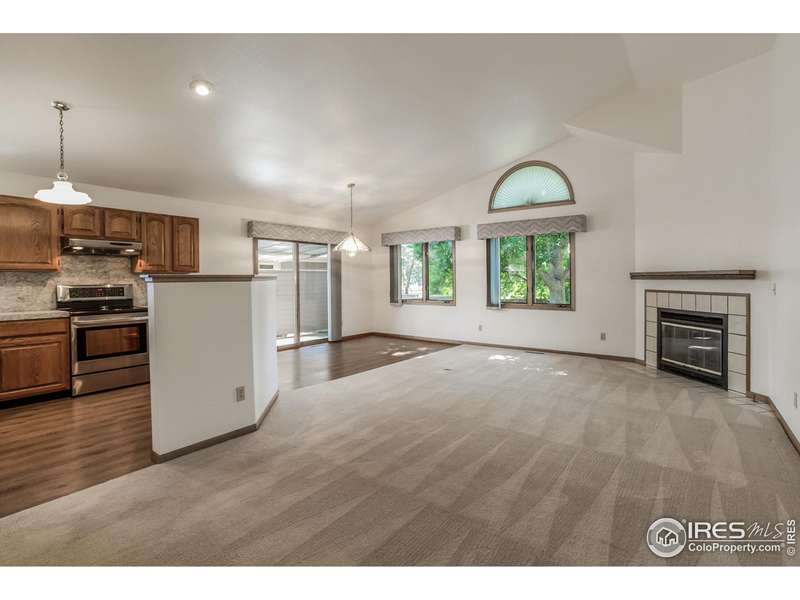 Ranch-style patio home in desirable Peachtree, backing to a spacious greenbelt. This well-maintained home offers low-maintenance living and is truly move-in ready! A charming covered front porch leads into the open floor plan, highlighted by vaulted ceilings and abundant natural light. The kitchen features stainless steel appliances, a corner sink, and an island overlooking the cozy gas fireplace. The vaulted primary suite includes a five-piece bath, while the generously sized guest bedroom is paired with an adjacent full bath. Step outside to the large patio with an awning, perfect for shaded outdoor living. The two-car garage comes equipped with shelving and cabinets for added storage. Enjoy the Collindale lifestyle-close to golf, the power trail, shopping, and dining