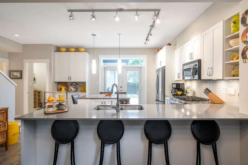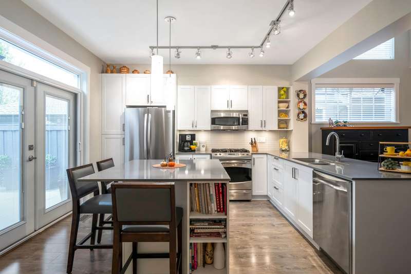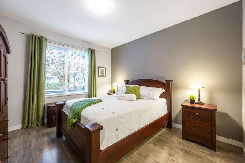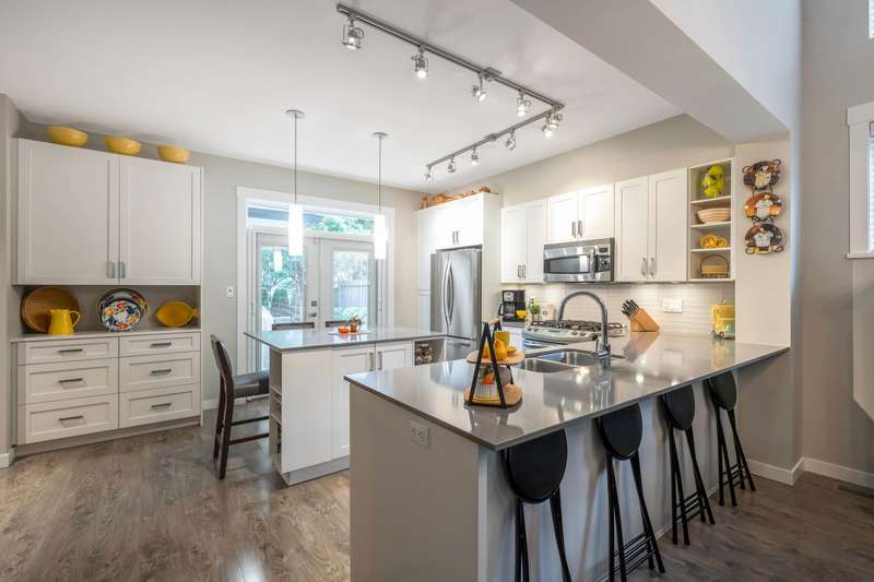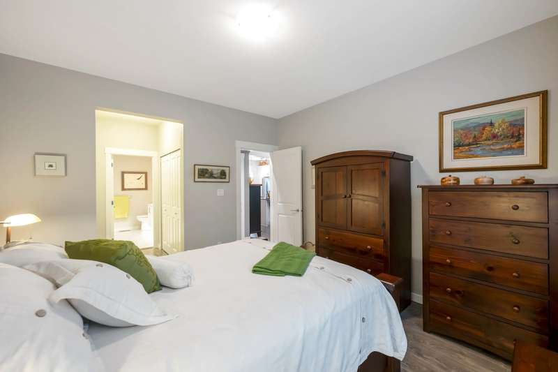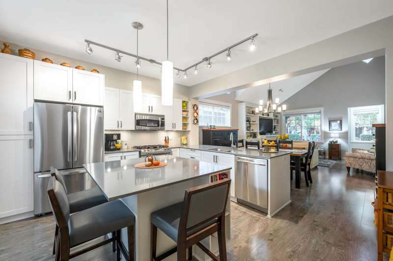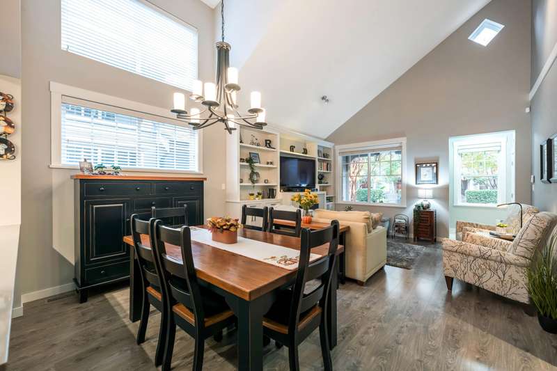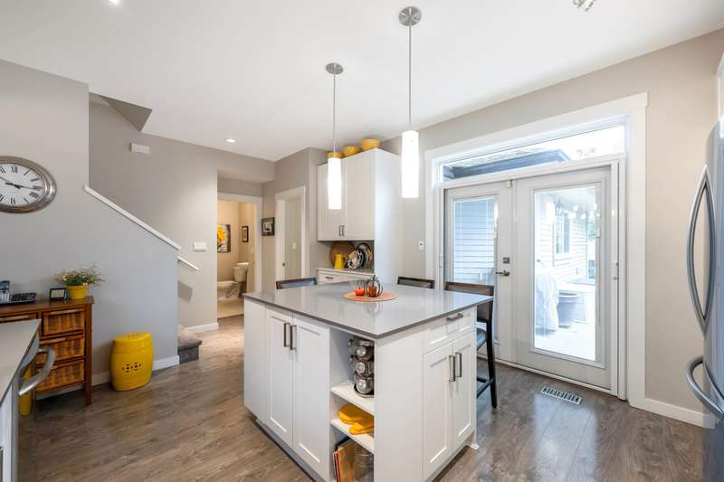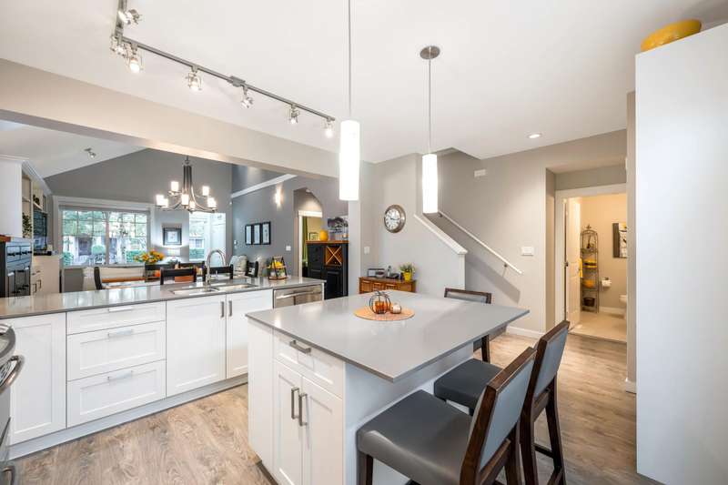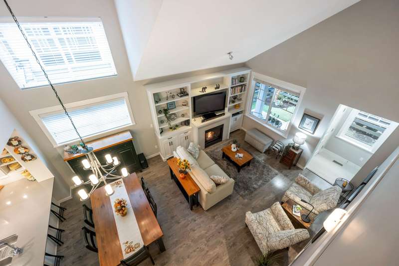 Welcome to Hillcrest! This beautifully updated and meticulously maintained townhouse offers everything you’ve been searching for. The primary bedroom is conveniently located on the main floor, with an open-concept kitchen, dining, and living area, plus a double side-by-side garage and full double driveway. Inside, enjoy soaring vaulted ceilings and a cozy gas fireplace. Step out to a large, serene backyard off the BACKLANE, designed for low maintenance with deck tiles and turf. The location is unbeatable—ample visitor parking, near shops, recreation, transit, and the new SkyTrain station! Countless tasteful and functional upgrades, including epoxy garage flooring, a renovated ensuite with walk-in shower, pull-out kitchen cabinets, and abundant storage. These homes sell fast—don’t wait!