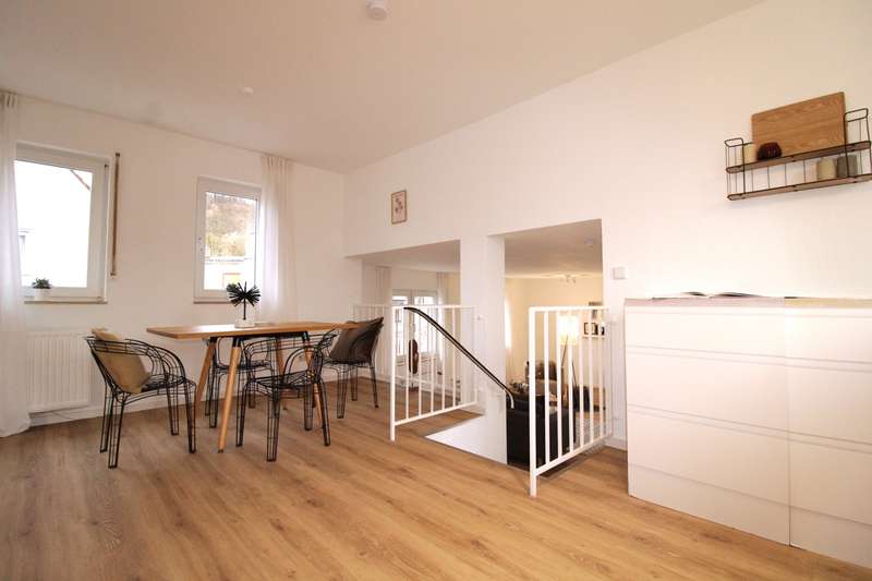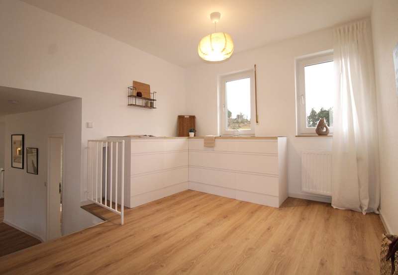 This loft/studio is centrally located in Lindenfels and has an interesting room layout. It is possible to set up a store or office in the entrance area. On the upper floor, there is a large living room and a shower room, a few steps lead to the kitchen with dining area and a separate and spacious bedroom. Here you can fulfill your individual dream of living and working or simply of extravagant living. Car parking spaces or garage spaces can either be rented or purchased on request.