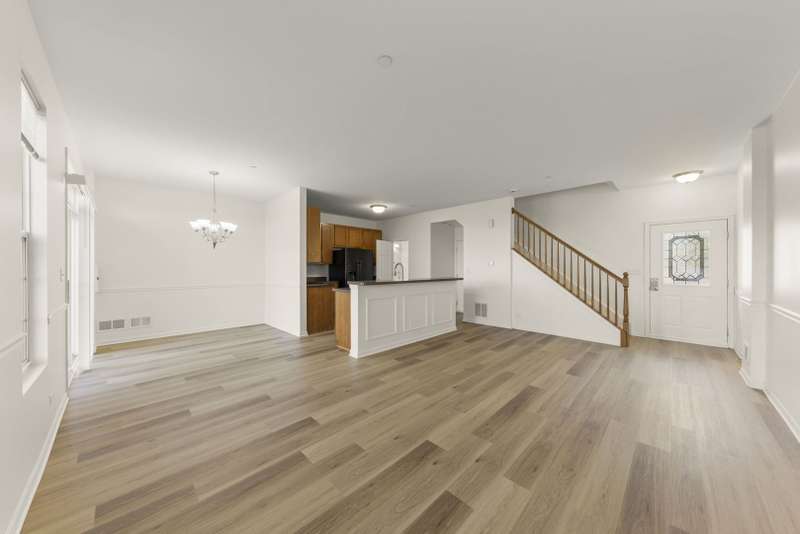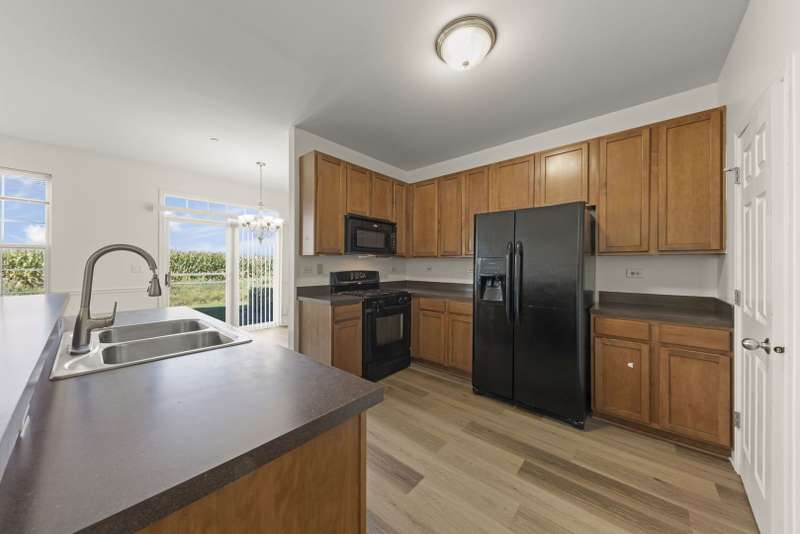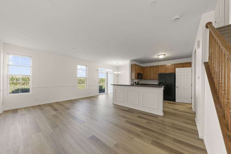 Welcome to this inviting townhome in the highly desirable Bristol Bay community, where style, comfort, and convenience all come together. Offering 3 bedrooms plus a versatile loft, 1.5 baths, and 1,551 square feet of well-designed living space, this home has been tastefully updated and is truly move-in ready. The first floor greets you with brand-new luxury vinyl plank flooring and a fresh, modern paint palette that creates a warm and welcoming feel from the moment you step inside. The open-concept layout seamlessly connects the spacious family room, dining area, and kitchen, making it ideal for both everyday living and hosting family and friends. The kitchen features rich cherry cabinetry, sleek black appliances, and generous counter space, while the adjacent dining area provides direct access to a private patio overlooking scenic farmland-perfect for enjoying your morning coffee or winding down at the end of the day. Upstairs, you'll find three generously sized bedrooms and a large loft that can easily serve as a home office, playroom, or additional lounge space. The full bathroom is conveniently located, and the laundry room upstairs makes daily routines more efficient. The attached two-car garage adds even more convenience with plenty of room for parking and storage. Beyond the home itself, Bristol Bay residents enjoy an array of amenities, including a pool, clubhouse, and beautifully maintained grounds, all fostering a vibrant and welcoming community. With quick access to Route 47, shopping, dining, and commuting are a breeze, making this home not only a great place to live but also a smart investment in lifestyle and location.