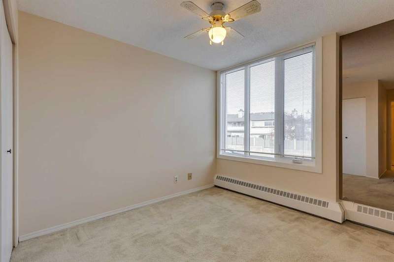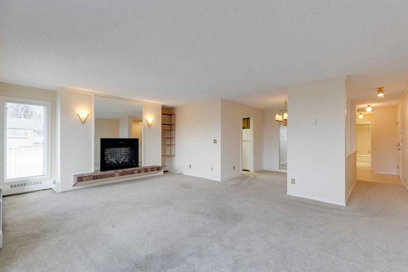Varsity - #206, 3737 42 Street NW: Welcome to this spacious 2nd-floor unit in Landmark Estates, located in the highly desirable community of Varsity. Freshly painted and offering 1,127 sq ft, this home features 2 bedrooms, 2 full bathrooms, an assigned parking stall, and two private balconies. One of the largest floor plans in the building, the layout includes a functional kitchen, a dedicated dining area, and a bright, generous living room with a gas fireplace and access to one of the balconies. The primary bedroom offers great space with a closet, a 3-piece ensuite, and access to the second balcony. You will also find a second bedroom with a massive walk-in closet and a 4-piece main bathroom. Landmark Estates is a well-maintained complex with updated exteriors, windows, landscaping, and common areas - plus clean, recently refreshed interiors, including the main-floor laundry room. Ideally located with plenty of visitor parking and just a short walk to Market Mall, and minutes to the University District, University of Calgary, Foothills Hospital, and Alberta Children’s Hospital. Vacant and ready for quick possession. Shows well - call today for more information!