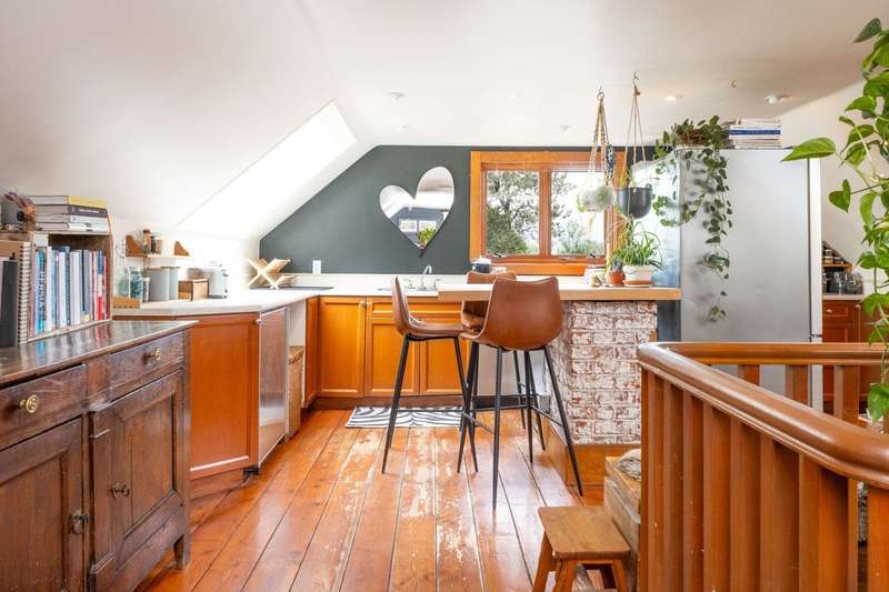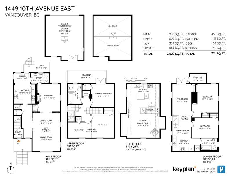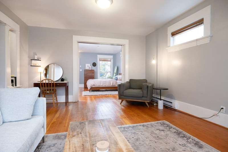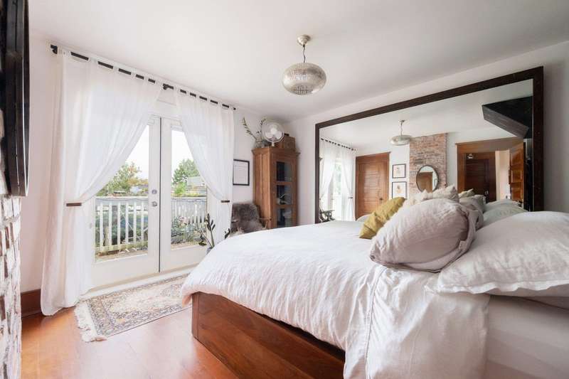 4-storeys & 3 suites, each w/ its own in-suite laundry. Main level suite: 849 sqft; open concept living room/dining rm; eat-in kitchen w/ access to the rear deck; bed w/ F/P; updated 3-piece bath w/ glass shower enclosure, exposed brick, & designer tile. Top 2 levels offer a 3-bed/1-bath suite w/ 1,108 sqft & H/W floors. Primary bed w/ French doors to a large private balcony. (Wall separating the 2nd & 3rd beds has been removed, but could easily be re-installed.) Top level includes kitchen w/ gas range & living room w/ skylight & wood-burning F/P. Lower level: 865 sqft, w/ 2-beds, 1-bath, gas range, & French doors to rear yard. Detached double garage w/ vaulted ceiling, skylight, & loft. Prime location close to Commercial Dr.