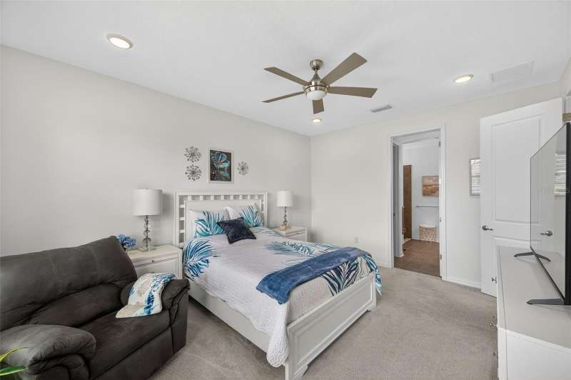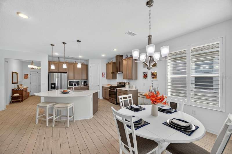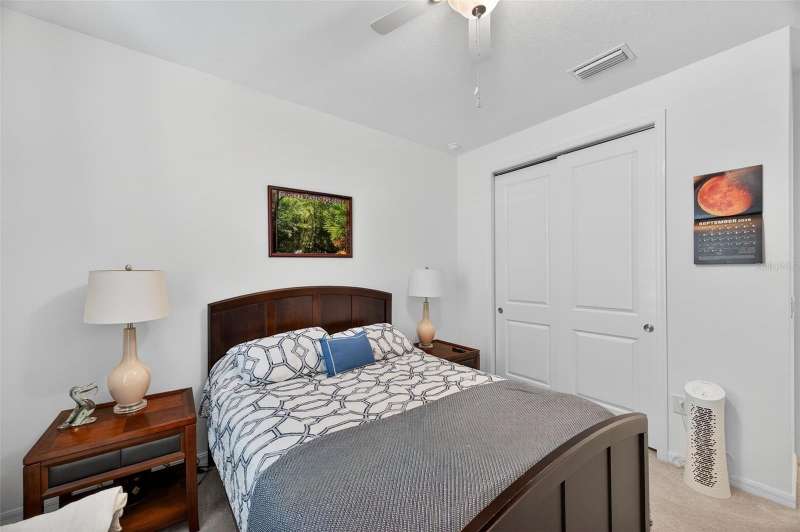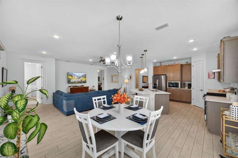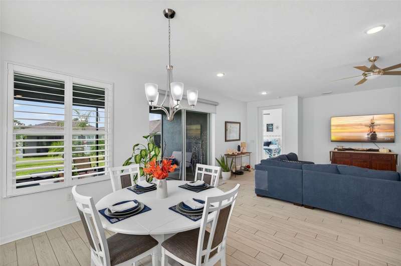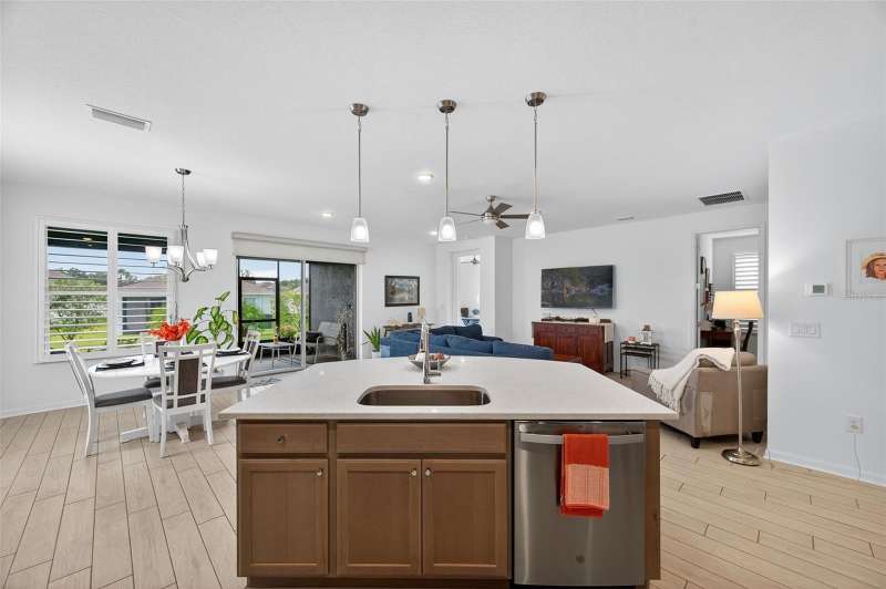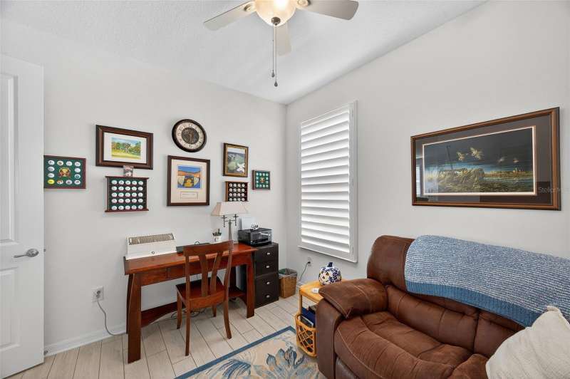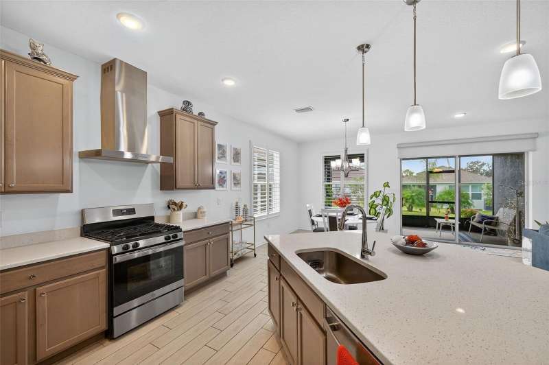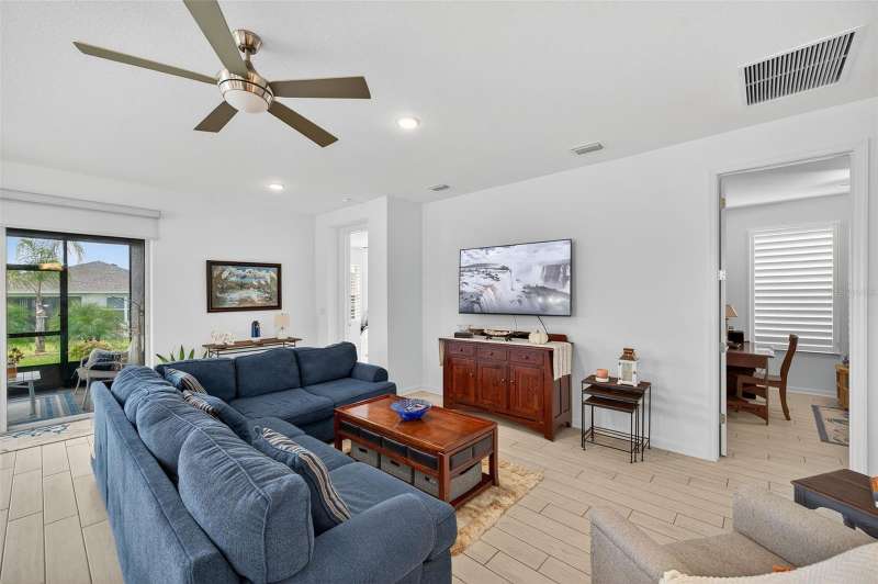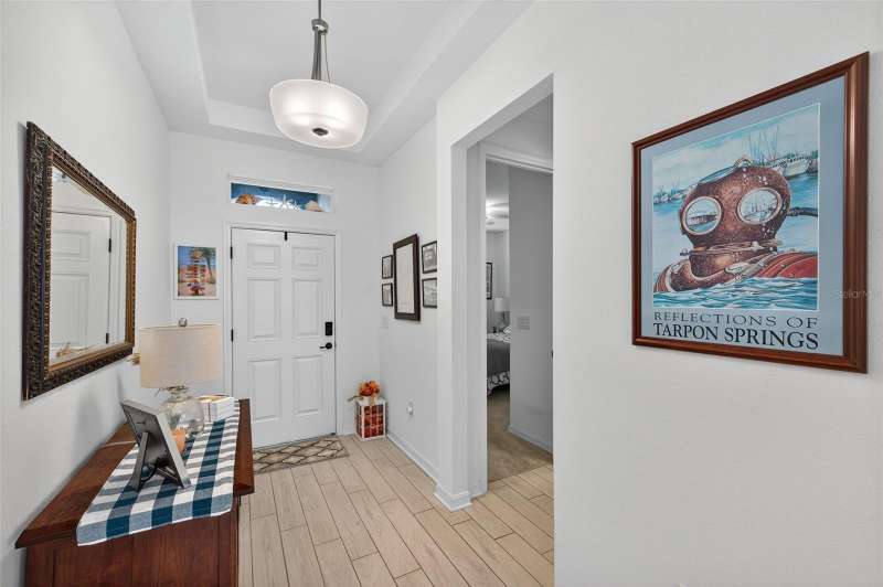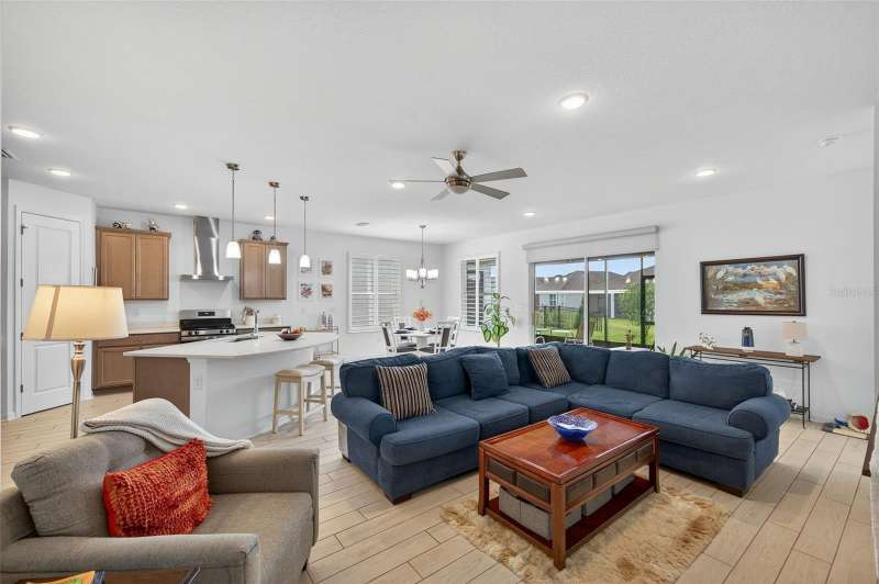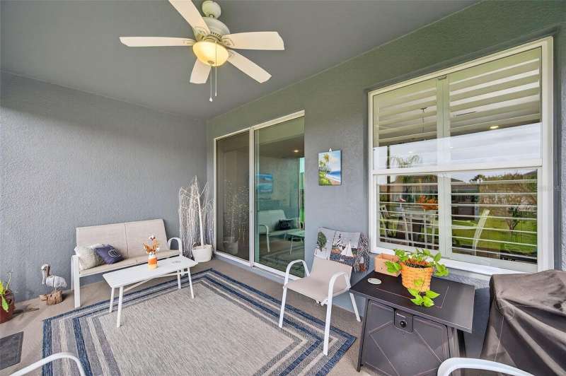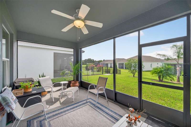 Driving through the gated entrance of Cascades at Southern Hills, you’re immediately greeted by oak-lined streets and a sense of tranquility. This 55+ community is tucked within Florida’s natural beauty, offering peace and privacy while still connecting you to an active lifestyle. One of the unique advantages here is the optional social membership to the Southern Hills Plantation Club that is available. As you arrive at the home, the brick-paved driveway and manicured landscaping set a welcoming tone. Inside, soaring ceilings and tall doors immediately create a sense of spaciousness. The open-concept design blends the kitchen, dining, and great room into a bright, inviting space. The kitchen is both stylish and practical, with stainless steel appliances, quartz countertops, a gas stove, and a generous island for meals, prep, or conversation. Plantation shutters frame the windows, adding a timeless touch to every room. The owner’s suite is a retreat designed for comfort, complete with a walk-in closet and a beautiful, large walk-in shower in the ensuite bath. A flexible bonus room just off the suite is ideal for a home office, den, or hobby space. Guests will enjoy their own comfortable bedroom and nearby full bath, offering privacy for everyone. Perhaps one of the most appealing features is the enclosed and screened patio, already completed for you, overlooking the landscaped backyard with added palms and plantings. It’s the perfect spot to enjoy your morning coffee or an evening breeze without the extra expense and wait that comes with a new build. Additional upgrades include a power shade, ceiling fans in every room (and on the porch), custom lighting, self-closing cabinets, and a water softener system. A 5-ton Trane AC provides efficient comfort, and the 10-year transferable structural warranty offers peace of mind for years to come. The washer and dryer are also included, making move-in effortless. Living here means more than just the home itself. The HOA covers cable, lawn mowing, fertilizing, pest treatments, and irrigation, giving you time to enjoy the community amenities. Take a swim in the lap pool, join a pickleball match, or relax by the fire pits with friends. The clubhouse offers both fitness and leisure, creating a lifestyle as active or relaxed as you choose. This home combines the charm of an established residence with the benefits of newer construction, plus the advantage of thoughtful upgrades already in place. Come experience it for yourself and see why Cascades at Southern Hills is more than just a neighborhood; it’s a way of life.