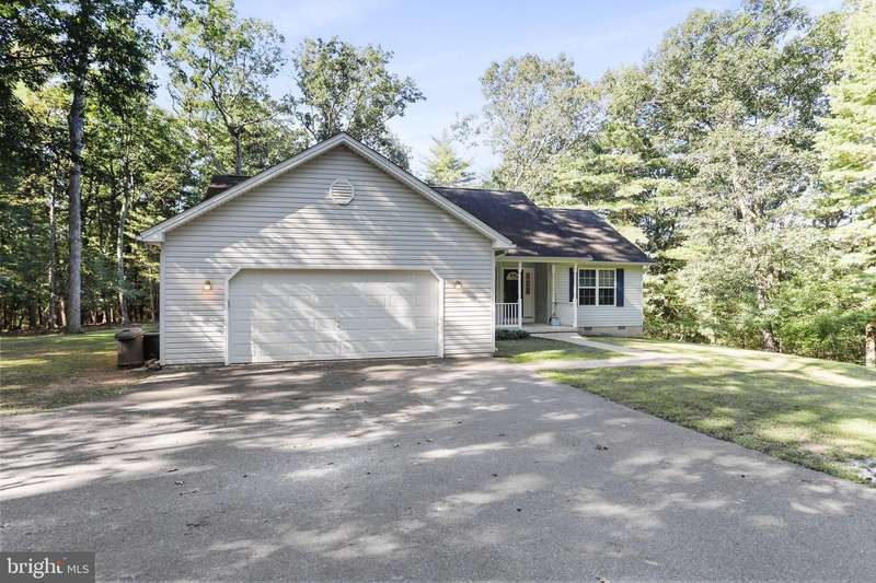 Welcome to 400 Spring Valley Drive, where comfort and country living meet on 5.36 wooded acres. This 3-bedroom, 2-bathroom rancher features an open floor plan with a split-bedroom design, luxury laminate flooring throughout, and fresh paint. The spacious great room flows into the kitchen with a breakfast bar and bump-out nook, perfect for casual meals and gatherings. A den/office sits just off the foyer for added flexibility. The primary suite offers private deck access and a bathroom with a soaking tub and shower. Outside, a 16x23 deck overlooks the fenced backyard, where deer and turkey often wander by. Evenings are made for the large firepit, ideal for entertaining or enjoying quiet nights under the stars. Additional highlights include an oversized 2-car garage, an extended driveway for extra parking, and a 3-year-old HVAC system. This quiet neighborhood offers the best of country living while keeping you close to town conveniences. Just a short drive takes you into downtown Berkeley Springs, or on quick trips to Winchester, VA, Martinsburg, or Hagerstown, MD. A perfect blend of serenity, comfort, and accessibility awaits.