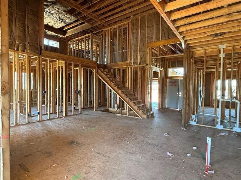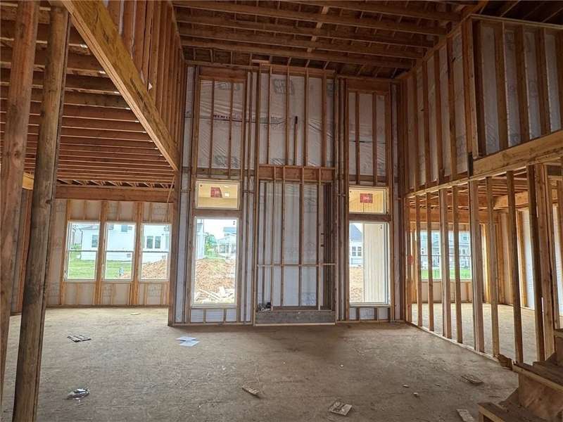 Wheeler Homes - the Newport 1.5 Story sits on lot 49 in Southern Meadows. This stunning 1.5 story plan features a soaring two-story great room filled with natural light, seamlessly connected to an open kitchen design. The chef’s kitchen is complete with an oversized island, abundant cabinetry, and elegant finishes, making it perfect for entertaining. The main-level primary suite is a true retreat, showcasing a luxurious bath with a spacious walk-in shower, free-standing tub, and convenient laundry access directly from the primary closet. Upstairs offers plenty of flexible living space with a study area, loft, and two generous bedrooms joined by a Jack & Jill bath—no need to finish the basement unless you want even more space! Enjoy the convenience of a rare four-car garage providing ample storage. The unfinished basement is ready for your future design and customization. Home is at Frame stage and will be ready in approximately March/April 2026. There is still time for all selections. All photos are of same plan style - model that features more upgrades than the actual home. We have a finished model you can tour.