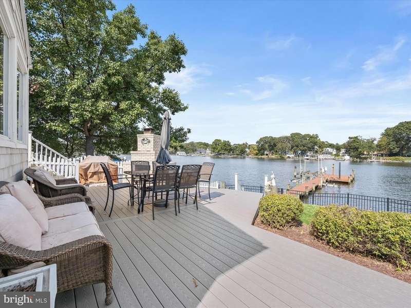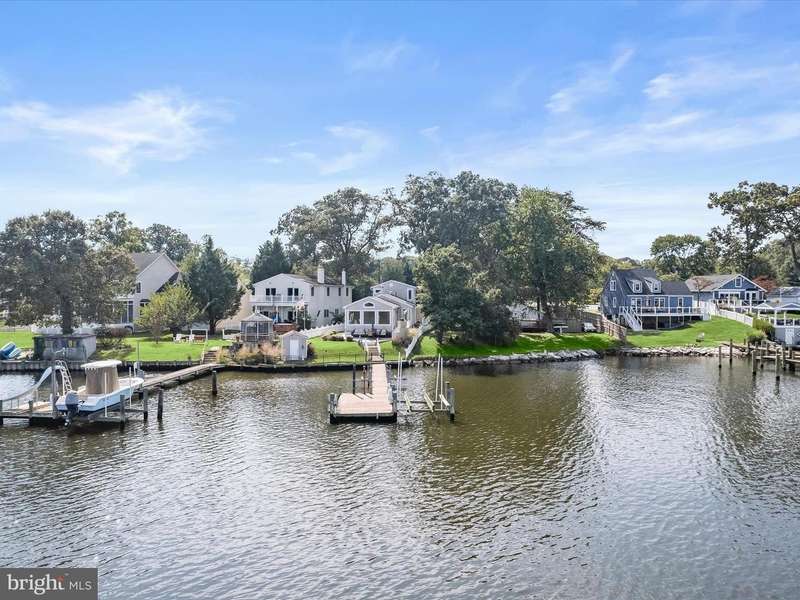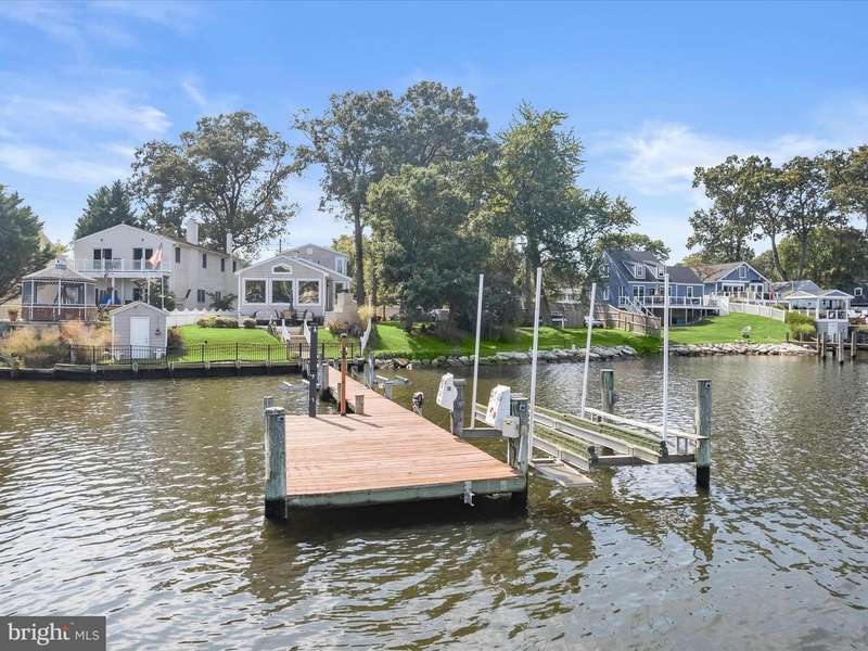 Imagine waterfront living on Bodkin Creek with direct access to the Chesapeake Bay, where every day feels like a retreat. This home is fully equipped with a private pier with 8ft MLW, a boat lift, two jet ski lifts, an outdoor shower, and 30 Amp electric service, perfect for boating, fishing, or simply enjoying the water. Step inside to a spectacular living room with a cathedral wood-planked and beamed ceiling, three oversized windows framing serene water views, and a striking stone accent wall. A pass-through to the kitchen with a seating bar connects the spaces effortlessly, while hardwood floors flow into the dining room, ideally situated between the living room and kitchen, with easy access to the expansive Trex deck overlooking the water. The kitchen impresses with a vaulted ceiling and skylight, granite countertops, stainless steel appliances including a double oven, a butler's pantry, and a center island with breakfast bar. Another breakfast bar in the pass-through overlooks the living room, perfectly combining function with water views. The main level also includes a renovated full bath with generous shower and a primary bedroom with a walk-in closet and loft, complemented by a convenient laundry room just off the entry to the bedroom. A spiral staircase leads to the lower level, which includes two additional bedrooms, one featuring a Clear Light Infrared sauna for ultimate relaxation, as well as a hall bath and storage closets. Outdoor living is equally impressive, with a Trex deck and outdoor stone fireplace overlooking the water, vinyl privacy fencing along the side, and aluminum fencing on the waterfront that preserves unobstructed views. Additional features include a 1-car detached garage, carport, and storage shed in the driveway. The property is enhanced with numerous modern updates, including complete deck and stair replacement with Trex composite, a professionally installed mini-split air conditioner in the primary bedroom loft, and upgraded garage electrics with two electric vehicle chargers. Other upgrades include a new garage door and opener, pier maintenance and repairs, new heating oil tank and replaced oil lines, shed roof replacement, new washer and dryer with proper vent installation, roof repairs, water softener upgrades, generator maintenance, basement vent fan installation, and a professionally installed IP camera security system with three exterior cameras and full on-site recording. Every detail of this waterfront property has been meticulously curated to combine luxury, functionality, and effortless water enjoyment, offering a lifestyle defined by comfort and relaxation.