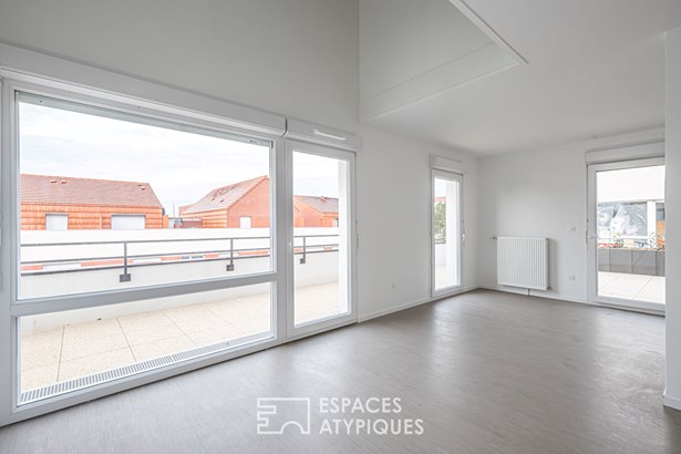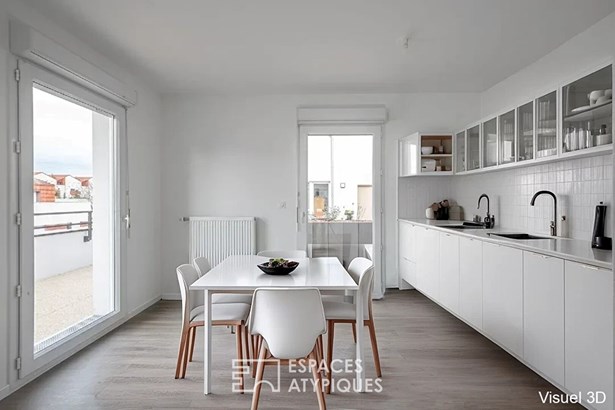 In the heart of the Parc de Maison Blanche in Neuilly-sur-Marne, this 107 sqm family duplex is located on the top floors of a recent building designed by Kaufman & Broad, delivered in 2022. Offering modern amenities and a peaceful living environment, it stands out for its volumes and brightness.