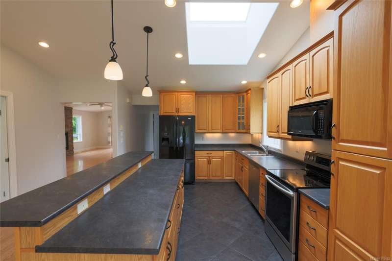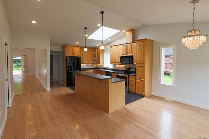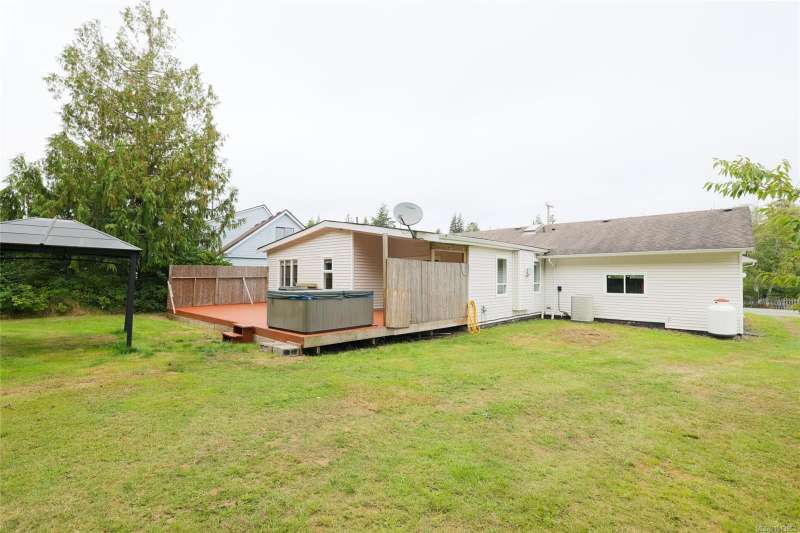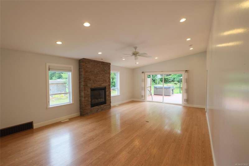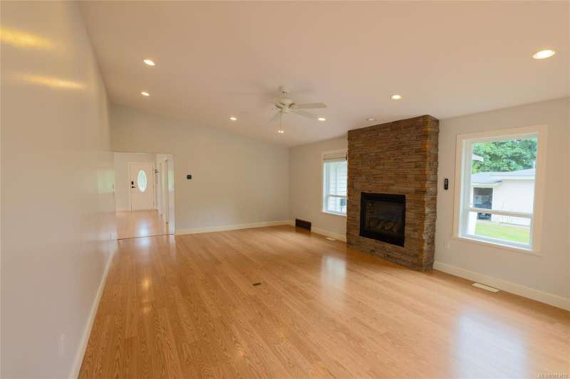 This spacious 1,600 sq.ft. rancher sits on a large, private .37-acre lot and features an oversized double garage with room for up to four vehicles. Step inside to vaulted ceilings, tons of natural light and an open-concept dining and kitchen area offering ample storage and counter space. Off this space is the first of three bedrooms, along with a laundry room, powder room, and garage entry. A second bedroom and full bath sit just off the kitchen. The home opens into an expansive family room with a cozy propane fireplace and direct access to the back deck and yard. The private primary suite is tucked off this space and includes a walk-in closet and ensuite with a large jetted tub. Clean, thoughtfully laid out, and move-in ready, this property offers comfort, privacy, and quick possession availability!