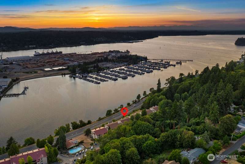 Live like you’re on vacation everyday in this top-floor, waterfront home. Western exposure offers breathtaking sunsets and views of Budd Inlet, the Capitol, Swantown Marina, and the Olympic Mountains. Shop, dine, and peruse the waterfront at leisure with Percival Landing and the Olympia Farmers Market just a mile away. This contemporary home offers oversized windows, a gas fireplace, and a private balcony all in a beautiful community with a heated pool, hot tub, EV charging, and vibrant events held in a clubhouse overlooking the water. Includes private garage with storage, additional parking, and in-unit laundry. Dues cover most utilities, basic cable, and more. This home is a rare blend of location, PNW lifestyle, and iconic Olympia views.