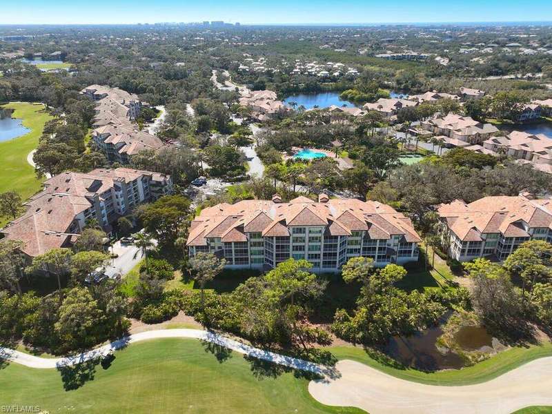 This exquisite condo is nestled in the prestigious community of Wedgewood at Bonita Bay, offering a luxurious and tranquil lifestyle. Step inside and be greeted by the warmth of engineered wood floors that flow seamlessly throughout the living spaces. The screen door entry foyer provides an added layer of privacy and through breezes. Plantation shutters adorn the windows, allowing for perfect control of natural light. The primary bedroom is a true retreat, featuring a convenient built-in desk for a home office nook, large picturesque windows that frame stunning views, and thoughtfully designed closet built-ins for ample storage. The en-suite primary bathroom boasts dual sinks with a vanity, custom cabinetry for extra storage and shower. The guest bathroom is located conveniently to guest bedrooms for easy access. This condo has been cleverly designed to offer a true 3-bedroom layout, maximizing space and versatility. In 2017, the home underwent a remarkable remodel, updating the kitchen and bathrooms with elegant granite countertops and modern stainless steel appliances. The air conditioning system was also replaced in 2017. The laundry room has been reimagined with a practical laundry sink, generous cabinetry, and a full-size washer and dryer. Enjoy breathtaking views from the impact resistant glassed-in lanai, allowing for an abundance of natural light to fill the space. The condo includes a 2-car garage located under the building, providing secure parking and a storage closet located right out your front door. With its warm and inviting ambiance and a desirable location, its offered unfurnished, allowing you to personalize the space to your taste. Overlooking double fairways and serene lakes, this condo offers an unparalleled living experience! Amenities within Wedgewood are large community pool, spa, grills, and tennis courts to enjoy.