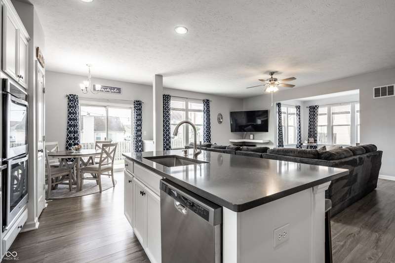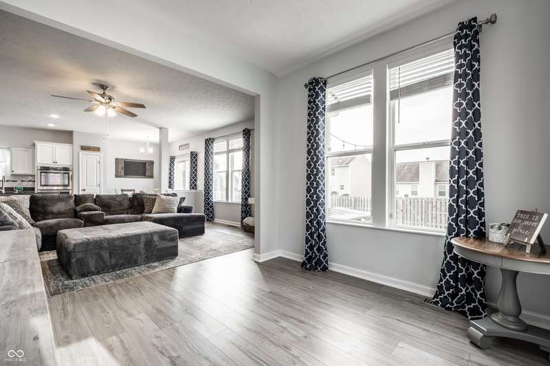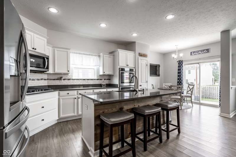 Skip the wait-move right into this 4 bed, 3.5 bath home with a finished basement! Enjoy luxury vinyl floors and 9ft ceilings on the main level, plus a sunroom and 4' rear extension creating a spacious breakfast area in the gourmet kitchen with island and tile backsplash. Main floor also features a mudroom, half bath, and private office. Upstairs offers a loft perfect for a gaming area, laundry, 2 guest bedrooms (each with a walk-in closet) and a primary suite with dual closets. The 1001 sq ft finished basement includes a 4th bedroom and full bath. Additional features: 4' garage bump-out, widened driveway, and a fully fenced yard with large concrete patio-ideal for entertaining!