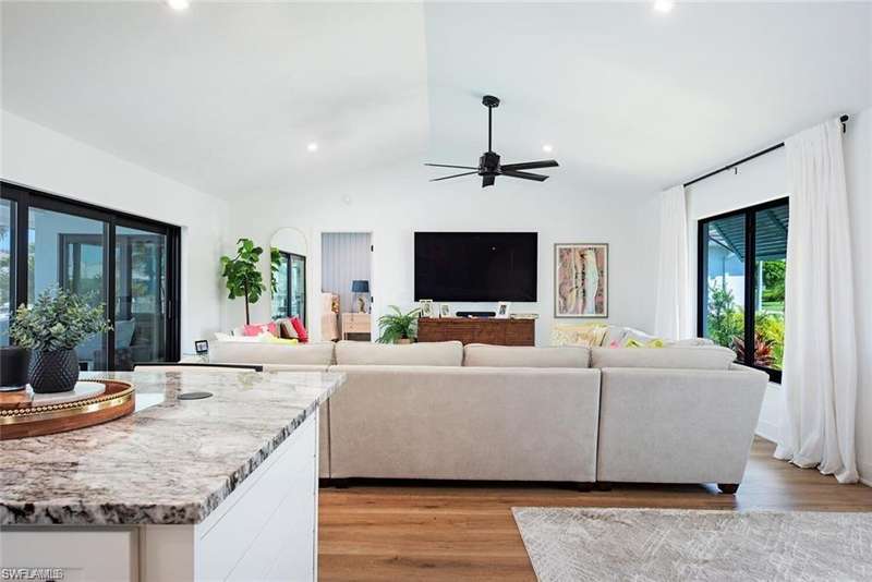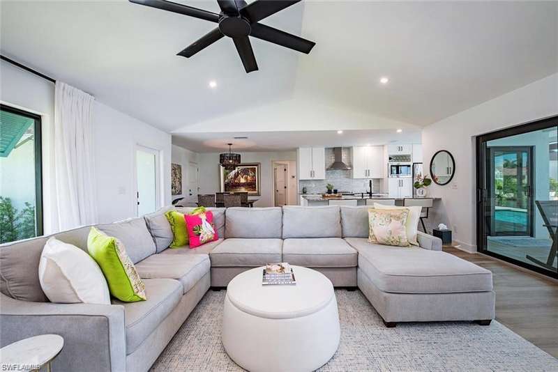 Welcome to your dream home on the magnificent Marco Island! This fully remodeled single-family residence offers unparalleled luxury and comfort, perfectly situated on a wide canal, ideal for boating enthusiasts, and boasting southern exposure with sunny pool/spa. Step inside to discover a stunning modern kitchen featuring beautiful stone countertops that blend style and functionality. The elegant wood flooring flows seamlessly throughout the home, highlighting the contemporary design and decor. The spacious living area provides a warm and inviting atmosphere, perfect for entertaining family and friends. Step outside to the gorgeous lanai seating area, where you can relax and take in the breathtaking wide canal views and intersecting waterway in the distance. Here, you can truly experience resort-style living at its finest, with the tranquil sounds of the waterway as your backdrop. Numerous recent upgrades including, but not limited to: new recessed lighting, new PGT double pane impact