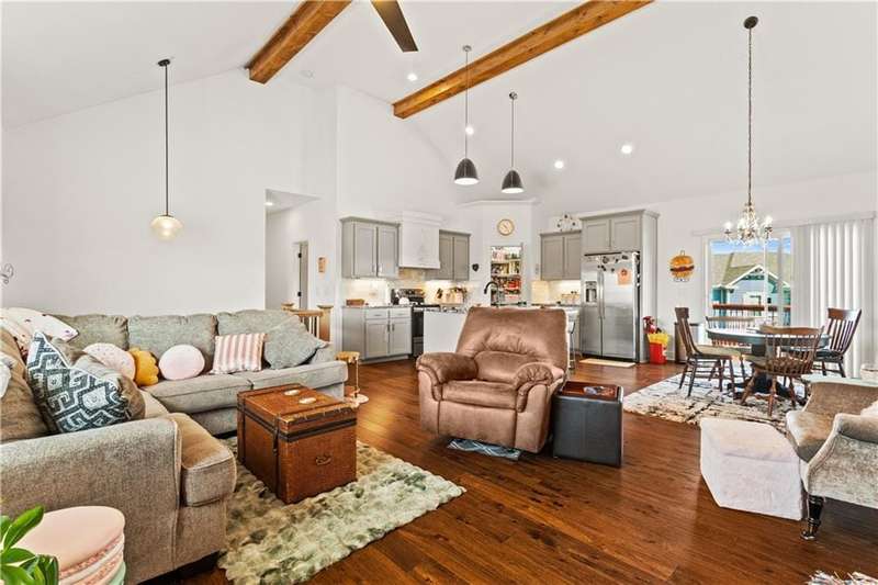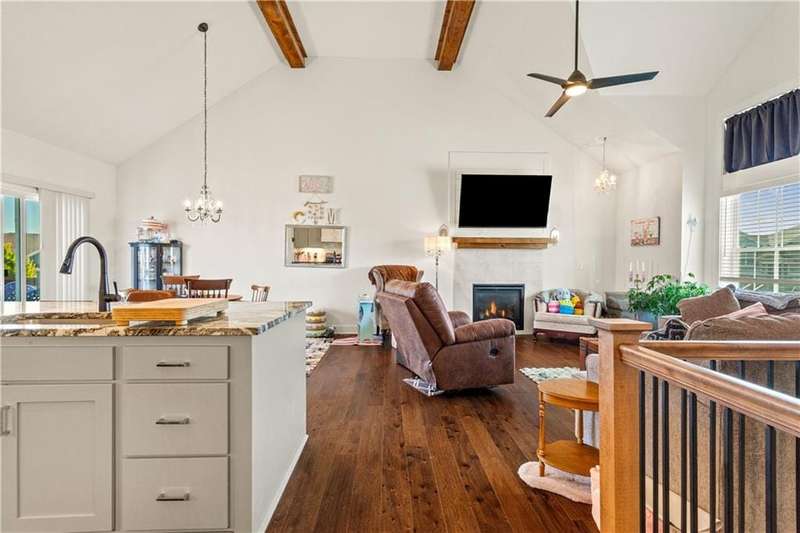 Experience the perfect blend of modern design and timeless comfort in this like-new 5-year-old residence. The Great Room sets the tone with rich hardwood floors, a welcoming fireplace, and soaring vaulted ceilings accented by handsome wood beams. Designed for both everyday living and entertaining, the kitchen features custom cabinetry, granite countertops, a generous center island, walk-in pantry, and premium stainless steel appliances. A bright dining area opens seamlessly to the deck.The primary suite offers a spacious walk-in closet and a spa-inspired bath with a soaking tub, dual vanity, and a beautifully tiled walk-in shower. A conveniently located laundry room with built-in storage enhances ease of living.The finished lower level expands the home with a versatile family room, a true fourth bedroom, a full bath, and a mudroom. Every bathroom showcases refined tile finishes, while an extra-deep garage ensures abundant storage.Positioned on one of the neighborhoods largest lots, this home also provides access to outstanding community amenities, including a pool, playground, and walking trails. A rare opportunityschedule your private showing today.