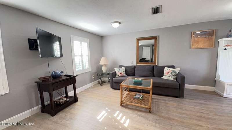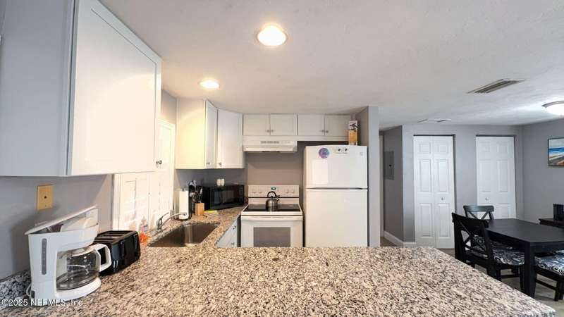 Best Beach Apartment in Town! This home is a corner unit directly inside the gate of the compound. One Bedroom Beach Apartment fully furnished Flagler Beach condo is centrally located 1 block from the beach. You can see and hear the ocean from the front door and it's a quick 2-minute walk to put your feet in the sand. This is a ground level access, one bedroom apartment with a full kitchen and dining area. Queen Bedroom set and sleeper sofa. Nice Living area with TV. Includes Full kitchen with Refrigerator, Range and Microwave. Included utilities area Water, Sewer, Cable and Internet. Off-street Parking. Call today for more information and showing. This will not last long.