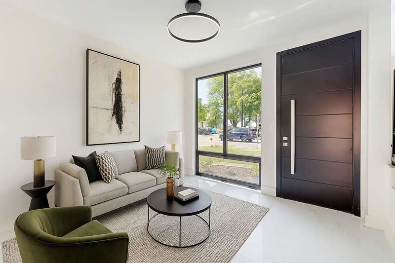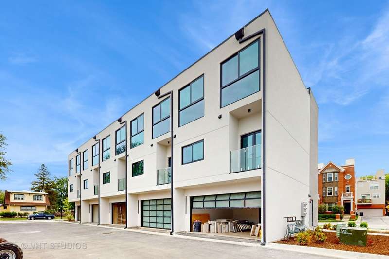 Explore the 3D Tour! Brand new construction. This is upscale, modern living at its finest! Discover the elegance of this Hollywood-style luxury townhome, ideally located near parks, Metra, restaurants, shopping, entertainment, fitness centers, Starbucks, Amazon Fresh, and more. It's the perfect blend of urban convenience and suburban comfort. Designed with a striking combination of cement, glass, and steel, this home offers an innovative and contemporary aesthetic for those who appreciate exceptional design and quality. Floor-to-ceiling windows and full-wall glass panels flood the space with natural light, enhancing the home's open and airy feel. This thoughtfully designed 3-story townhome includes: *Three bedrooms and three full bathrooms across a spacious and versatile floor plan *Finished first level with direct access from the attached 2-car garage-ideal for a home office, media room, gym or guest space *Main level with open-concept living, dining, and kitchen areas, two balconies, and an additional bedroom *Third level with two bedrooms, laundry unit and a bath. Private master suite, complete with a luxurious en-suite bathroom. *The gourmet kitchen features 42 upper cabinets, stainless steel appliances, Dekton countertops-perfect for entertaining. This is your opportunity to own a 2025-built home with exceptional craftsmanship, high-end finishes, and outstanding architectural detail. No detail has been overlooked-move in and live worry-free. Indulge in the lifestyle you deserve.