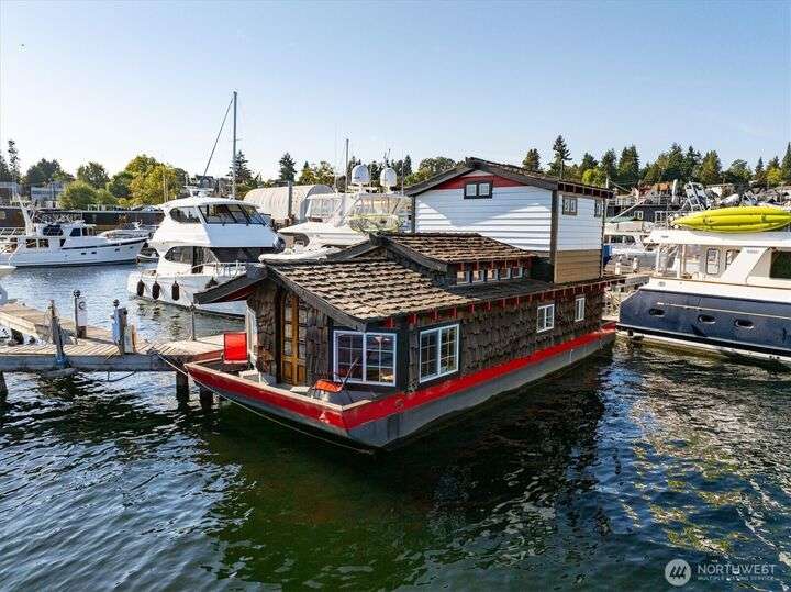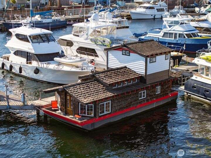 Uncompromising Lake Union views & intelligent design combine to create the ultimate in houseboat living. Easy water access with the last slot on the dock, you’ll find no end of both city views and unrestricted lake vistas. Step into this houseboat & find the perfect gathering spot with a wide interior, a thoughtful kitchen w/all the fixings & impressively vaulted ceilings throughout. A barn door leads to a ¾ bathroom, and the spacious living room offers easy deck access through artful stained glass doors. Upstairs, find a welcoming bedroom, complete with a large closet. Offering a perfect location (you’re just minutes from downtown Seattle, lake-centric recreation, and more), this houseboat is the perfect place to call home sweet home.