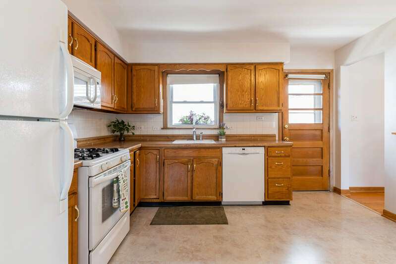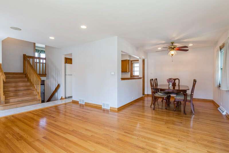 Such a convenient and quiet location, just 1 block to the Dee Rd train station, close to O'Hare, highway access and on a dead-end street. Traditional 3 bedroom split with 2 full baths. Big front windows flood the main living space with natural light, big kitchen opens to dining room. Hardwood floors in the 3 upstairs bedrooms and hallway, recently renovated bathroom. Large lower level family room and second full bath also updated. So much storage space in the concrete crawl and lower level laundry room. Nice yard with room to play or garden, patio and 2.5 car garage.