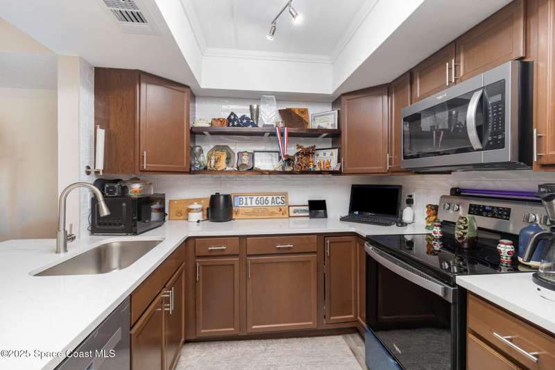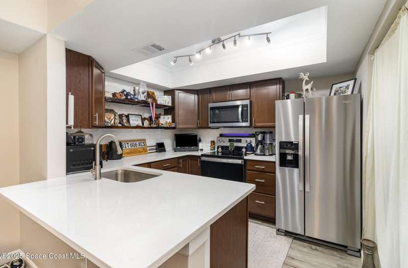 Step into comfort and convenience with this beautifully updated 2-bedroom 2-bath condo located in the heart of Melbourne. This ground floor unit boasts a completely renovated kitchen and bathrooms, showcasing modern finishes, sleep fixtures, and a fresh, contemporary look throughout. The home features laminate flooring in every room - no carpet here! Enjoy added privacy with your own fenced-in patio off the living room, perfect for grilling or relaxing outdoors, plus a covered and screened front porch ideal for morning coffee or extra storage.