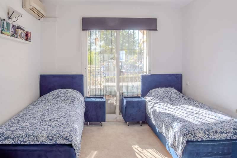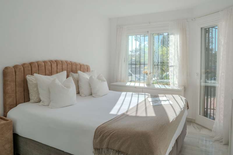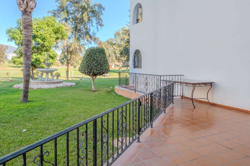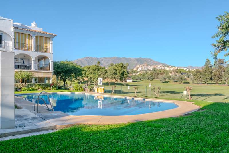 This charming two-bedroom apartment is perfectly located on the front line of Mijas Golf, offering peaceful views and a relaxed lifestyle. The property features two spacious bedrooms with excellent built-in storage. The master bedroom includes an en-suite bathroom and direct access to a private terrace, while the second bedroom also has its own access to the terrace — ideal for enjoying the beautiful outdoor space from both rooms. The bright and inviting living room is connected to a cosy, well-equipped kitchen and features a charming fireplace that adds warmth and character. From the living room, sliding doors lead out to a generous terrace with stunning views of the golf course and direct access to the well-maintained community areas. The complex offers three communal swimming pools surrounded by lush gardens, perfect for enjoying the sunny Costa del Sol climate. The property also includes a private underground parking space and a storage room, providing both comfort and convenience