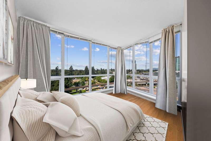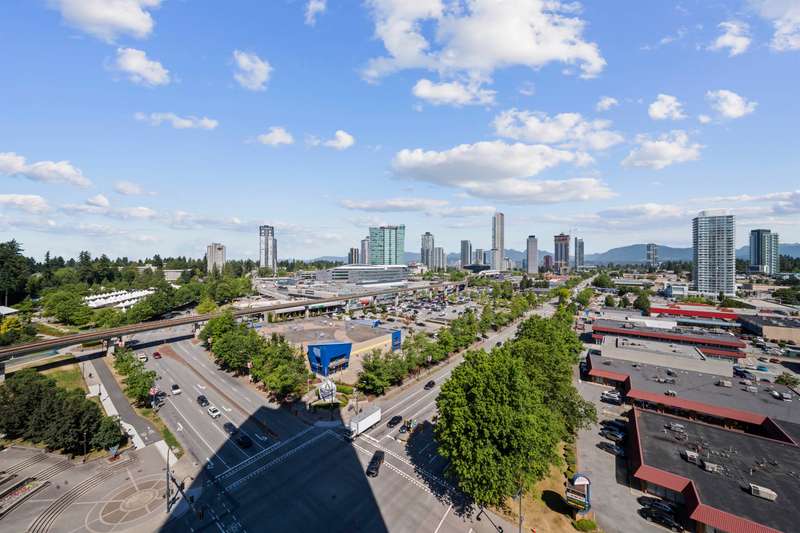 Welcome to Infinity, where location meets lifestyle! This naturally bright 2-bedroom, 2-bathroom CORNER unit is perched on the 14th floor, offering sweeping North and West views of the Surrey cityscape and majestic mountains. Floor to ceiling windows with approximately 900 sq ft of thoughtfully designed living space, this home features granite countertops, sleek black appliances, and warm brown cabinetry, all contributing to a modern yet inviting aesthetic. The open-concept layout is perfect for both relaxing and entertaining. Located in the heart of Surrey’s vibrant city centre, you’re just steps to King George SkyTrain Station, and minutes from SFU, KPU, the future UBC campus, City Hall, and Central City Shopping Centre. Building features a Concierge,Exercise room, and Sky lounge!
