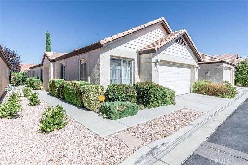 Welcome to your new home. Located in Apple Valley Jess Ranch 55+ community. Come take a look at this beauty. Home has very nice open floor plan with 2 bedroom 2 baths with indoor laundry room. Kitchen is good size with lots of storage, pantry and eating area by window to sit and enjoy. Guest bedroom is good size with walkin closet and small patio area. Hall bath has single sink with tub & shower. Owner suite is very large has nice view in the backyard. On suite bath has single sink nice shower and large walkin closet. Home has 2 car garage with lots of storage. Step out onto the patio and just sit and relax and know your home.