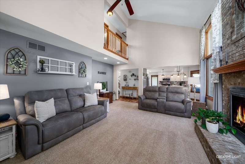 Nearly 2,600 Finished SqFt, beautifully maintained home in North Plainfield...Just steps from Wallin Oaks Elementary, Ira Jones Middle School, Plainfield YMCA & tucked away on a quiet cul-de-sac! NO HOA fees! Offers convenience, charm, and space for the whole family...From the moment you arrive, you'll be drawn in by the inviting front porch and landscaped yard. Inside, the open floor plan and contemporary style are filled with natural light. The 2-story family room impresses with floor-to-ceiling windows and a brick fireplace, creating a perfect space for gatherings. The gourmet eat-in kitchen features a spacious island, closet pantry with custom pull-out shelving, and abundant cabinet space. Upstairs, the primary suite is a retreat with a tiered tray ceiling, huge walk-in closet, and spa-like bath. Two additional bedrooms offer generous closet space-including one with an attached bonus room, perfect for hanging out, gaming, or study space. The finished basement expands your living space with a private office and plenty of storage. Outside, enjoy the beautiful back deck and a peaceful setting while still being minutes from downtown Plainfield, highways, shopping, dining, and parks. Plainfield schools. Meticulously maintained and move-in ready-this is the one you've been waiting for!