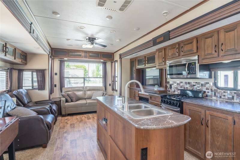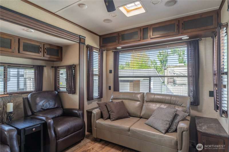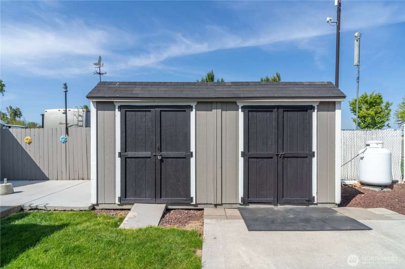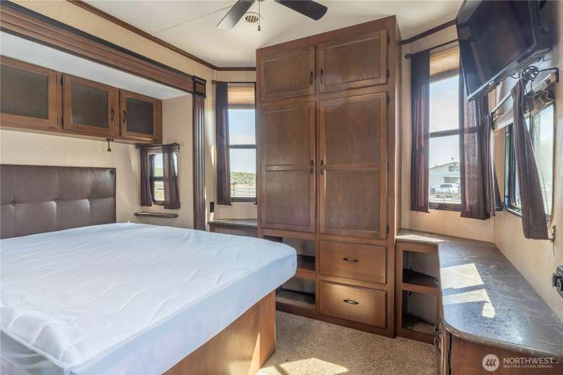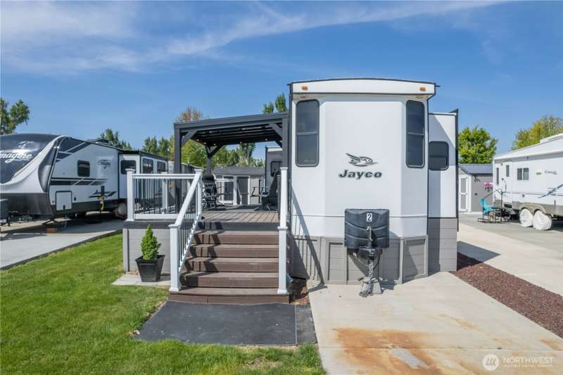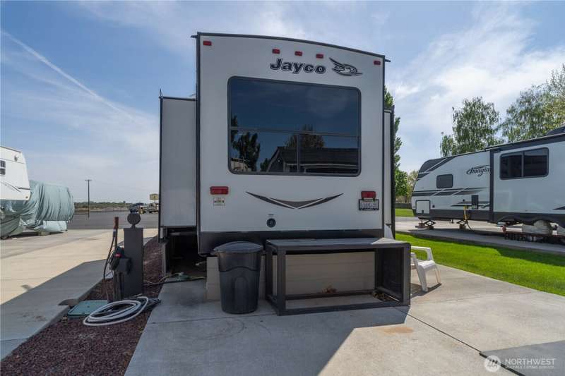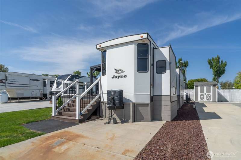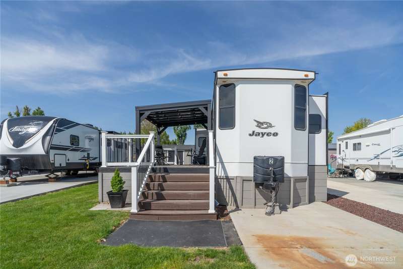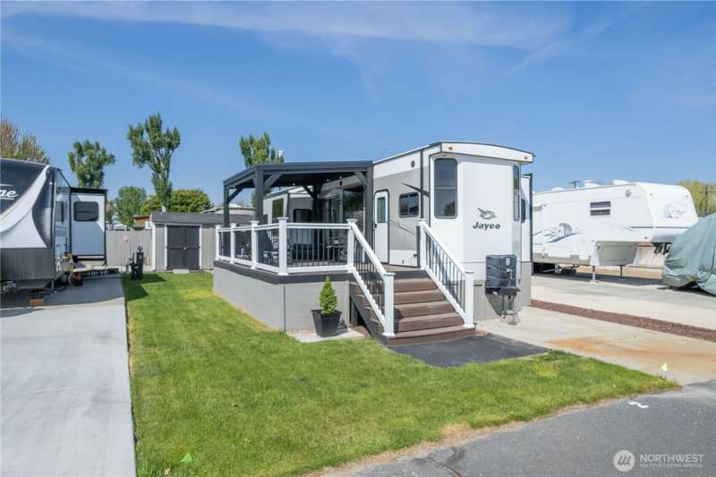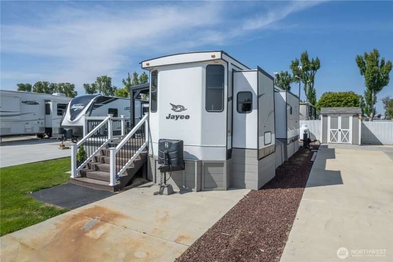 Enjoy Resort living in this stylish 40 Ft Jayco RV. RV w/3 tip outs, no rd. miles, beautiful vacation home! Granite counters in the kitchen and custom bedroom design with built-in cabinets and large wardrobe, Washer and Dryer. Large storage shed with power. Enjoy evenings on your covered patio with a great golf course view. Beautifully landscaped. Home is perfect for summer golf days. Boat, hunt, & fish at Potholes Reservoir. Perfect Year Around! Just step across the road for fishing & hunting. Located only 150 feet from the 1st tee box and the Restaurant & Pro Shop. Enjoy the peaceful life with all the amenities of the city just 20 minutes away.