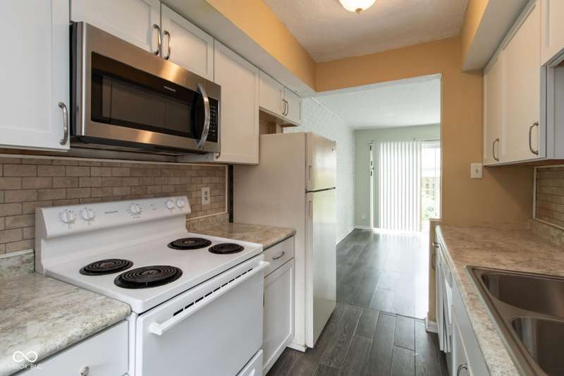 Welcome home to this beautifully updated condo offering low-maintenance living with modern touches throughout. The main level features stylish flooring, a spacious living room with sliding doors that lead to your private, fenced-in patio-perfect for relaxing or entertaining. The galley kitchen is bright and functional, offering updated cabinetry and a designated dining space just off the entry. Convenient half bath on the main level adds function for guests. Upstairs, you'll find two generously sized bedrooms, including a spacious primary suite with dual closets. The full bathroom has been thoughtfully renovated with a modern vanity, updated fixtures, and a tiled shower/tub combo. Washer and dryer hookups are located in-unit for added convenience. Enjoy the neighborhood pool in close proximity. Whether you're looking for your first home, downsizing, or seeking an investment property, this move-in-ready condo checks all the boxes. Conveniently located near shopping, dining, and interstate access!