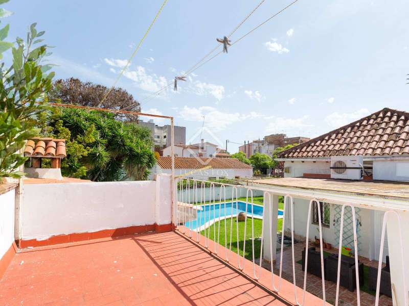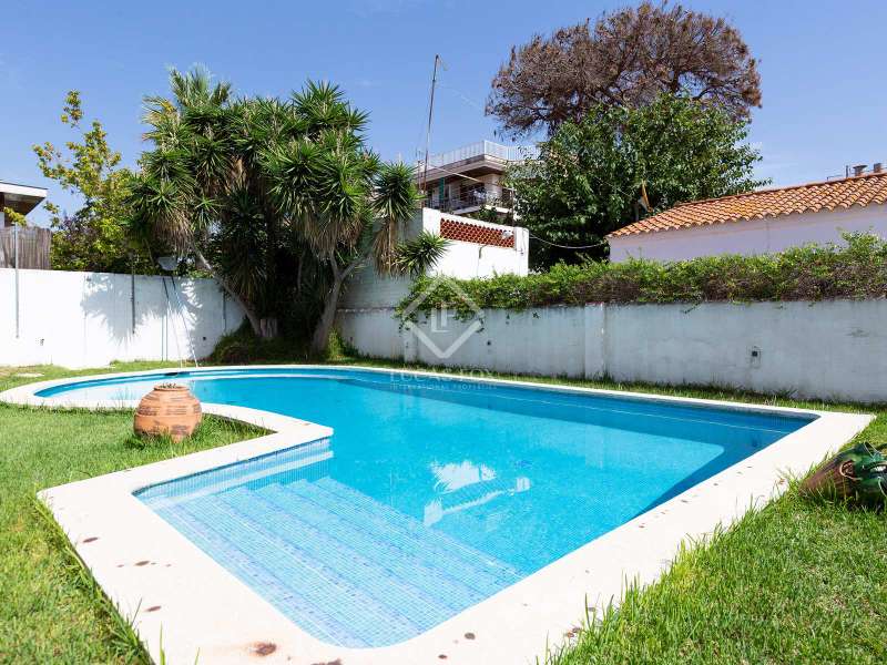 This is an opportunity to acquire a property located on a flat 540 m² plot in the beach area of Castelldefels, a 2-minute walk from the sea and close to all amenities. The house currently has a surface area of 150 m² on one floor. It comprises a living-dining room with a fireplace, a separate kitchen, two double bedrooms, and two complete bathrooms. Exterior , there is a large porch, an annex building that currently houses the utility area , a built-in barbecue, the exterior kitchen, and the 40 m² pool. The house was renovated in 2011 and again in 2020, and features air conditioning, parquet floor , and aluminum windows. The option of demolishing the current house to build a brand-new property is available, either as a private residence or as an investment, as the plot offers great potential for building a 400 m² detached house or two semi-detached homes with their own swimming pools. This is a great opportunity to design your dream property in a prime location just a two-minute walk from the beach. Call us today to schedule a viewing of this oceanfront home with endless options.