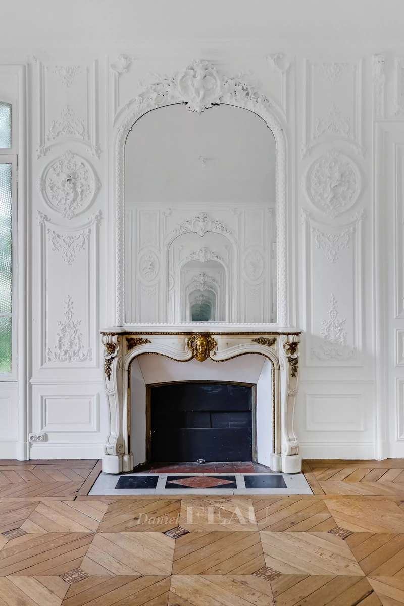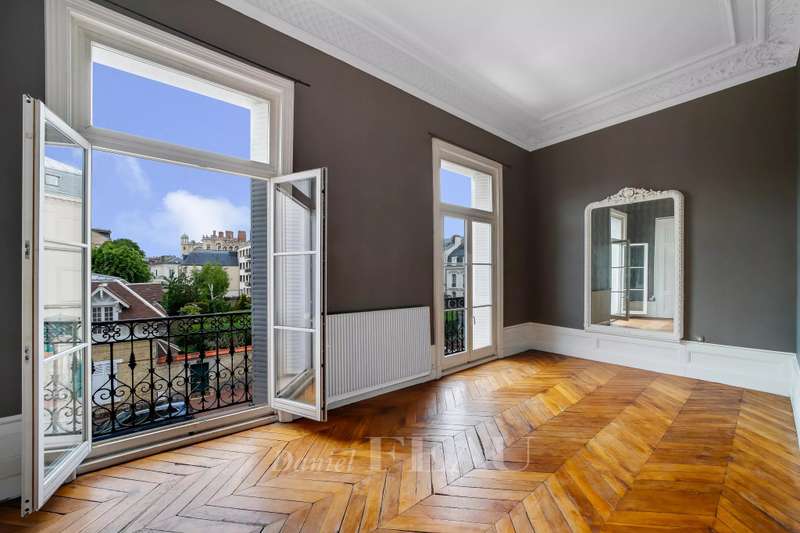 This prestigious apartment is on the 1st floor of a fine mid 19th century private mansion located near the chateau, the schools and the shops, and 200 metres from the station. Featuring over 3.91 metre high ceilings with exquisite mouldings, bas-reliefs and Versailles-style parquet flooring, it includes a 30 sqm living/reception room boasting remarkable Napoleon III style decorative features, a second living/reception room with a fireplace, a kitchen, three bedrooms and a bathroom. With a cellar.